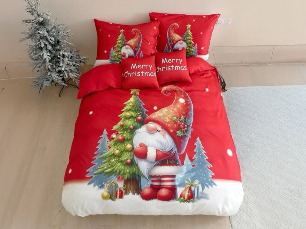 3D mikroflanelové povlečení GNOME DREAMS červené + povlak na polštářek 40x50 cm zdarma
