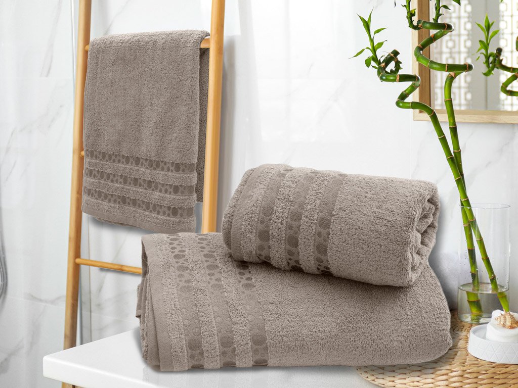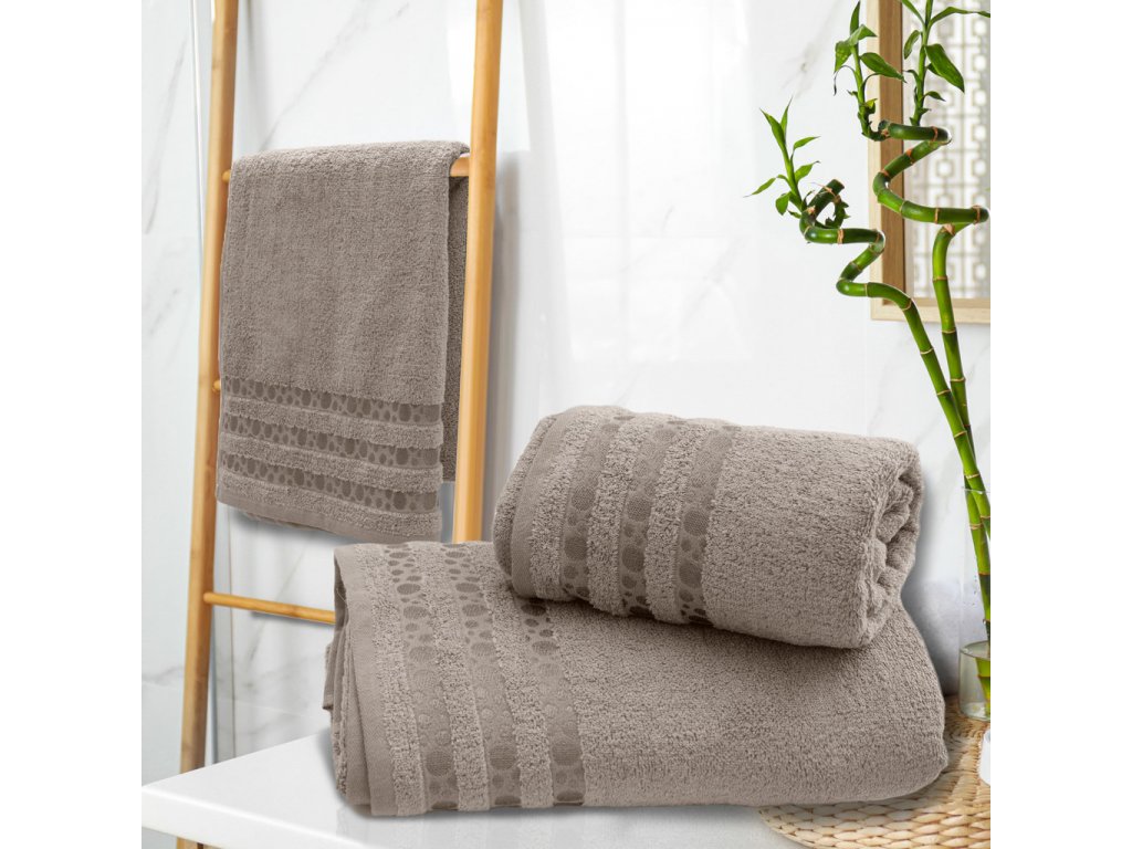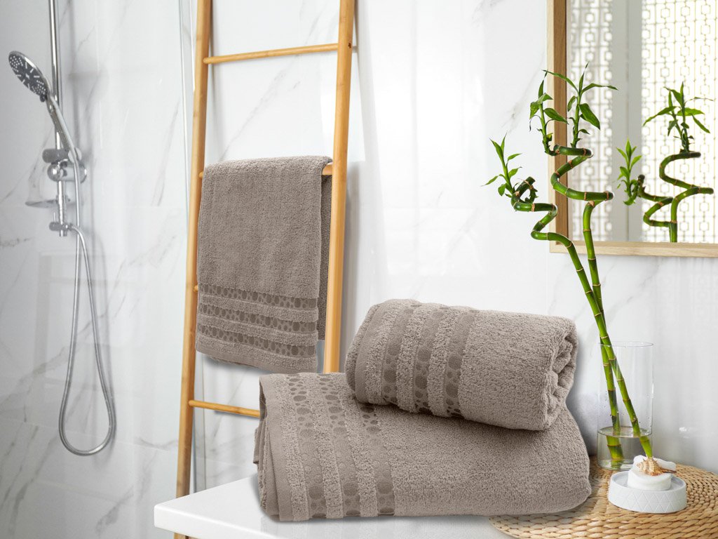 Bambusový ručník DOTS 50 x 100 cm světle hnědý, 70% bambusové vlákno | 30% bavlna