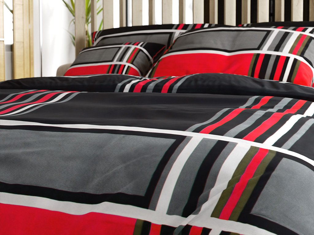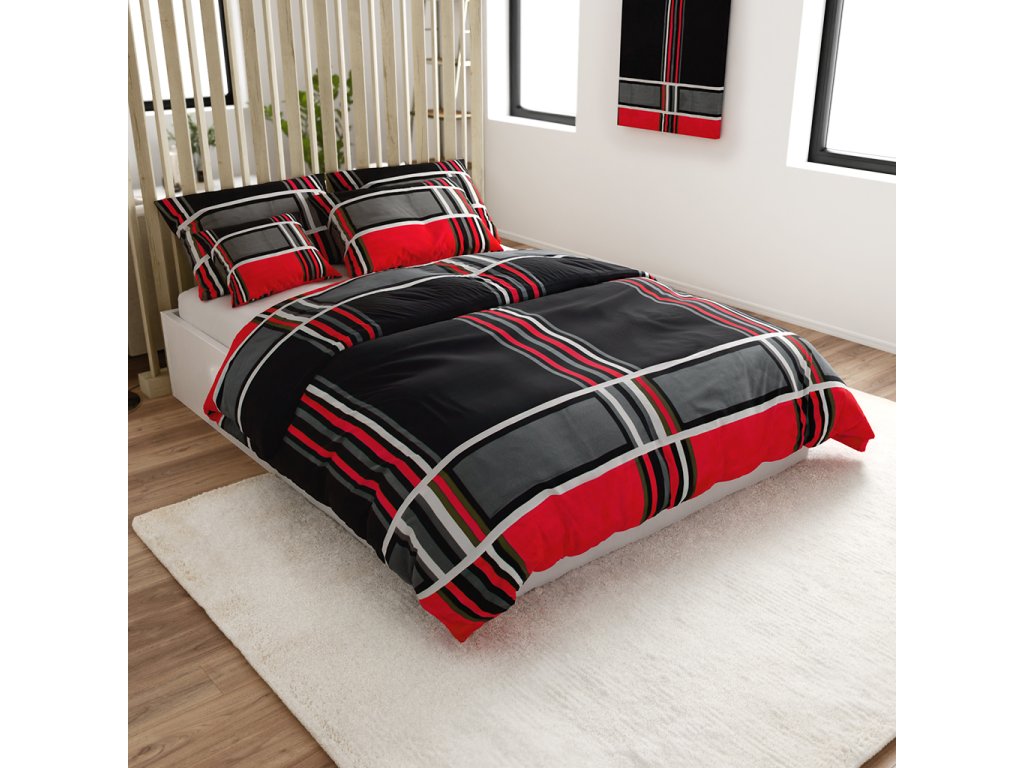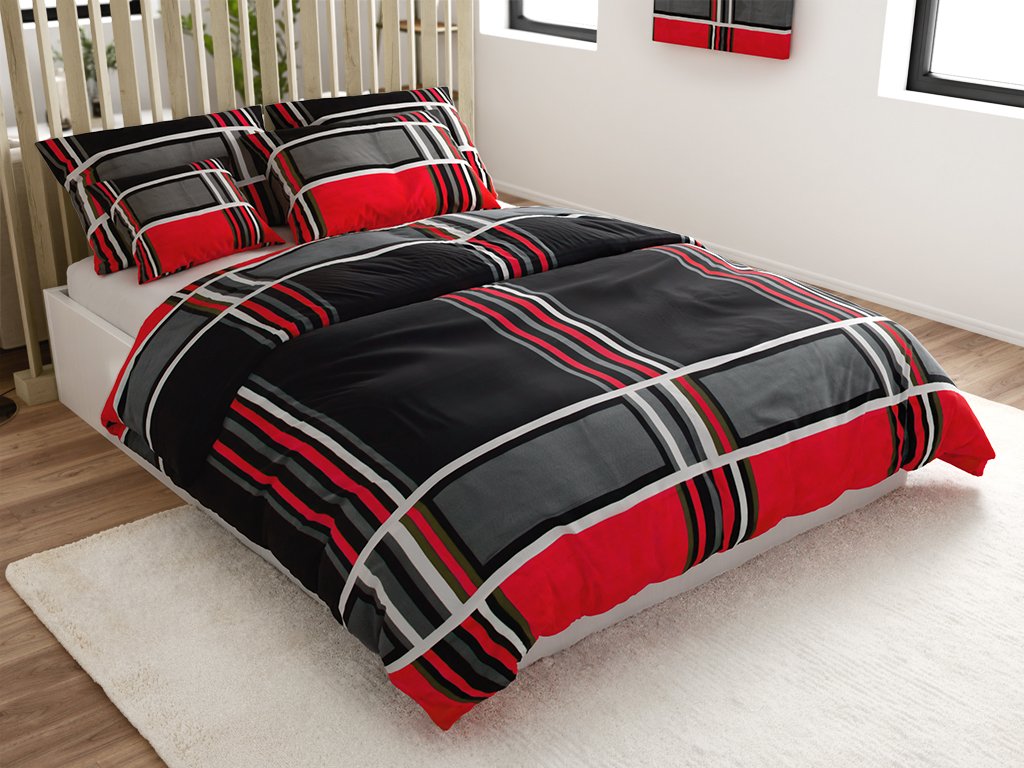 Bavlněné povlečení KARO BLEND v energické červené kombinaci s výrazným kostkovaným vzorem dodá ložnici moderní šmrnc. Červená, černá, šedá a bílá se vzájemně doplňují a vytvářejí dynamický kontrast, který zaujme na první pohled. Směs 80% bavlny a 20% polyesteru nabízí pohodlí při spánku i snadnou údržbu.