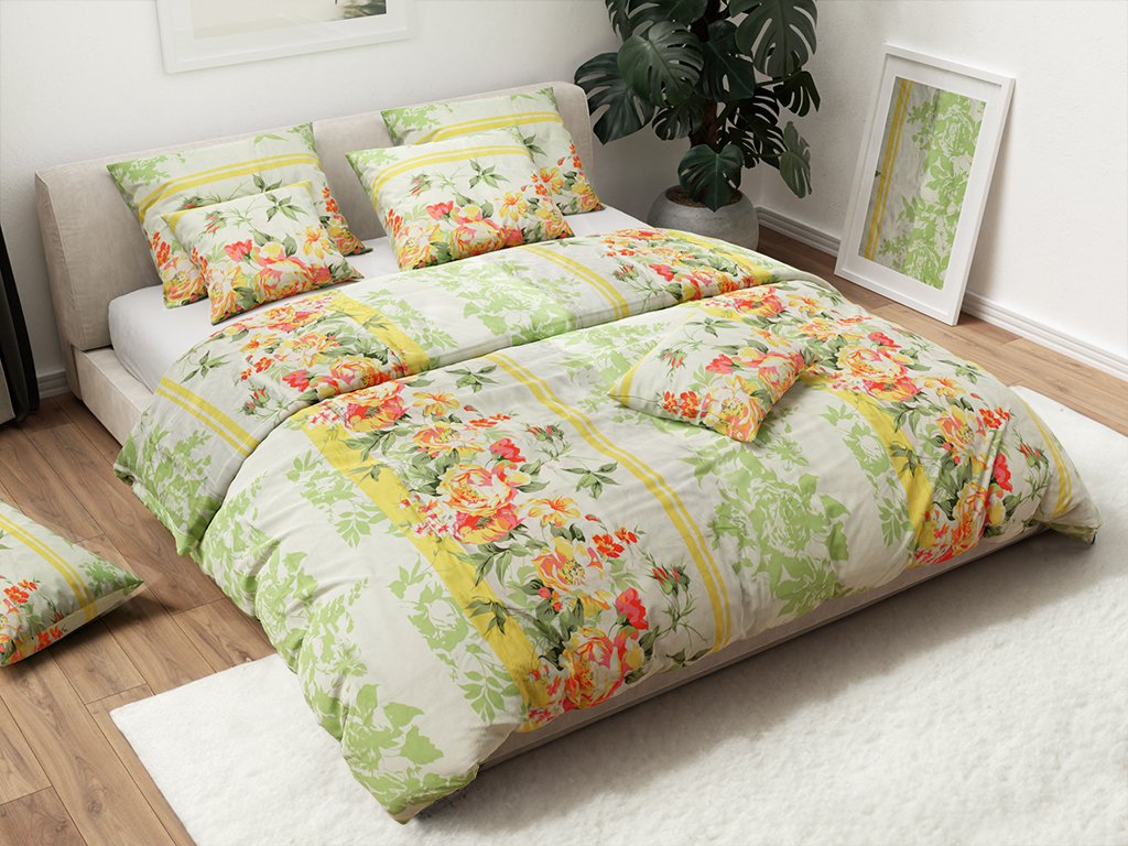 Bavlněné povlečení KVĚTY S LISTY žluté