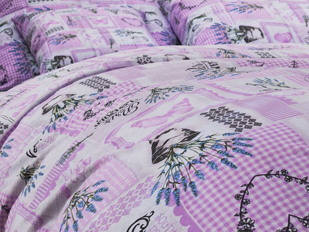Bavlněné povlečení LEVANDULE A SRDCE fialové