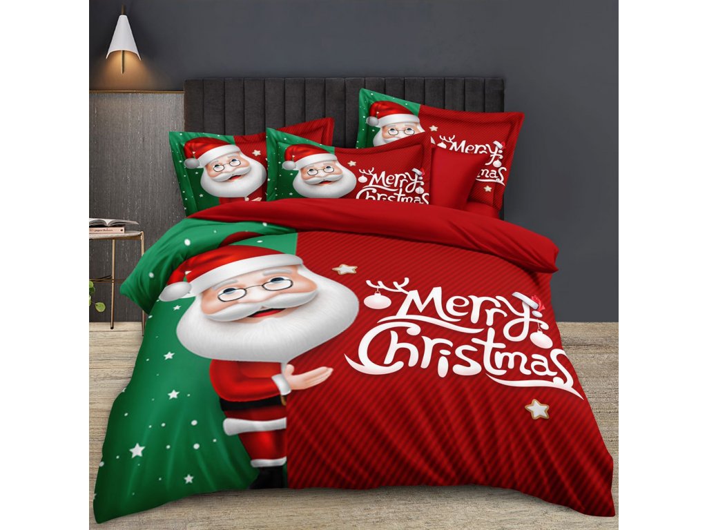 Bavlněné povlečení MERRY CHRISTMAS SANTA červené + povlak na polštářek 40 x 50 cm zdarma