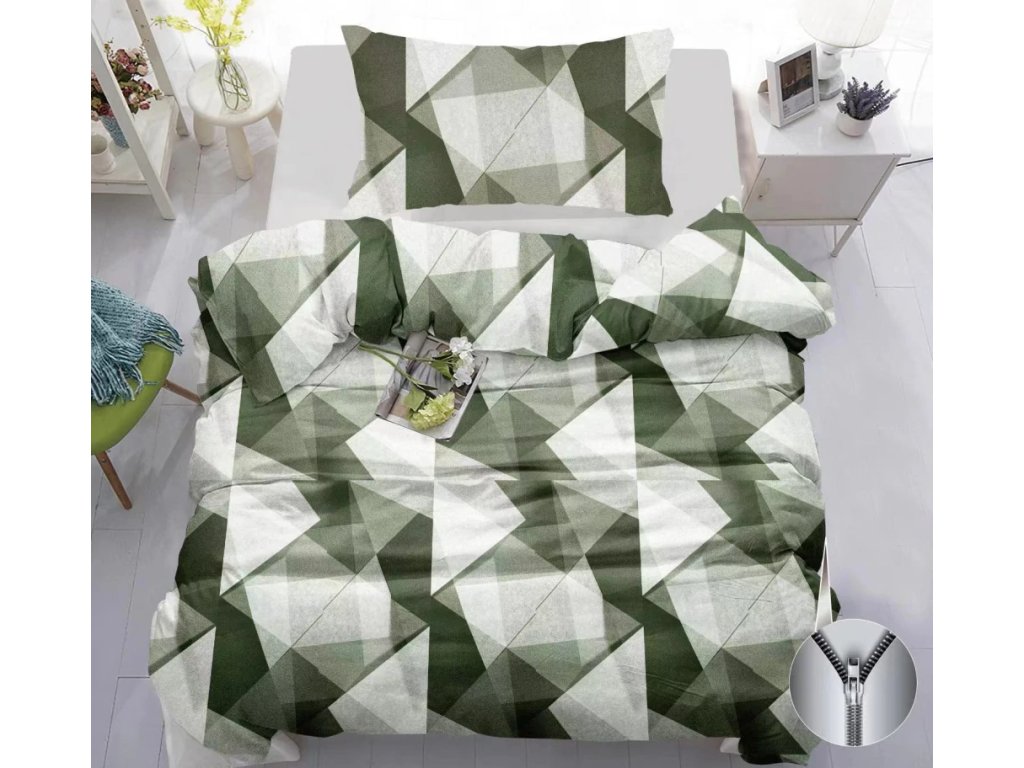 Zelené bavlněné povlečení Triangles je opatřeno nenápadným zapínáním na zip. Zachumlejte se do hebkého povlečení i vy.