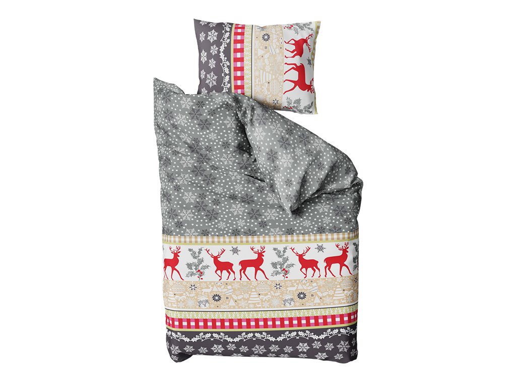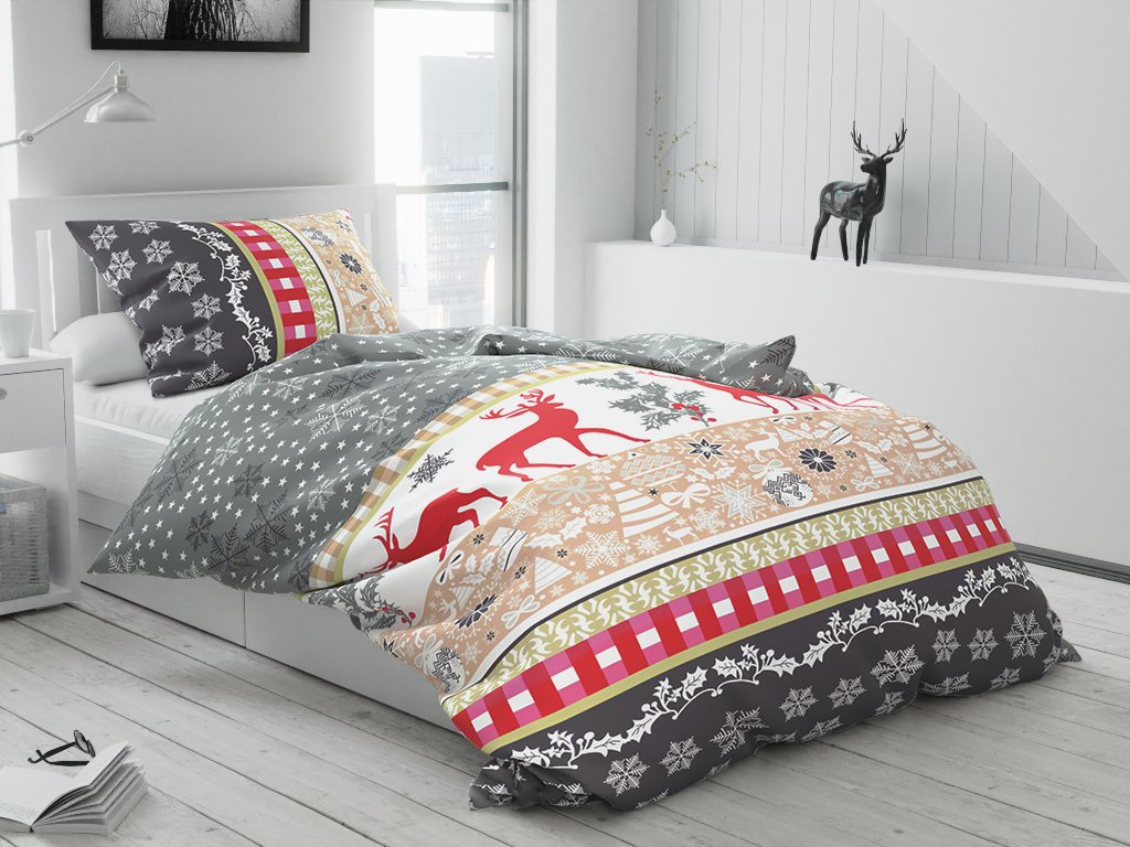 Pravá vánoční nálada i ve vašem pelíšku. Hravé vánoční motivy povlečení vás zahřejí na duši a ochrání před zimními chmury. Klasické a velice oblíbené motivy jelenů, sobů nebo vánočních ozdob můžete vybírat v širokém spektru barev. Vneste do ložnice nebo pokojíčku vznešenou atmosféru a ducha Vánoc, plného klidu a nečinnosti.