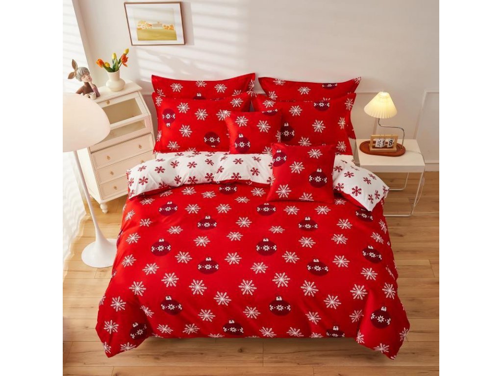 Bavlněné povlečení VÁNOČNÍ OZDOBA A VLOČKA červené