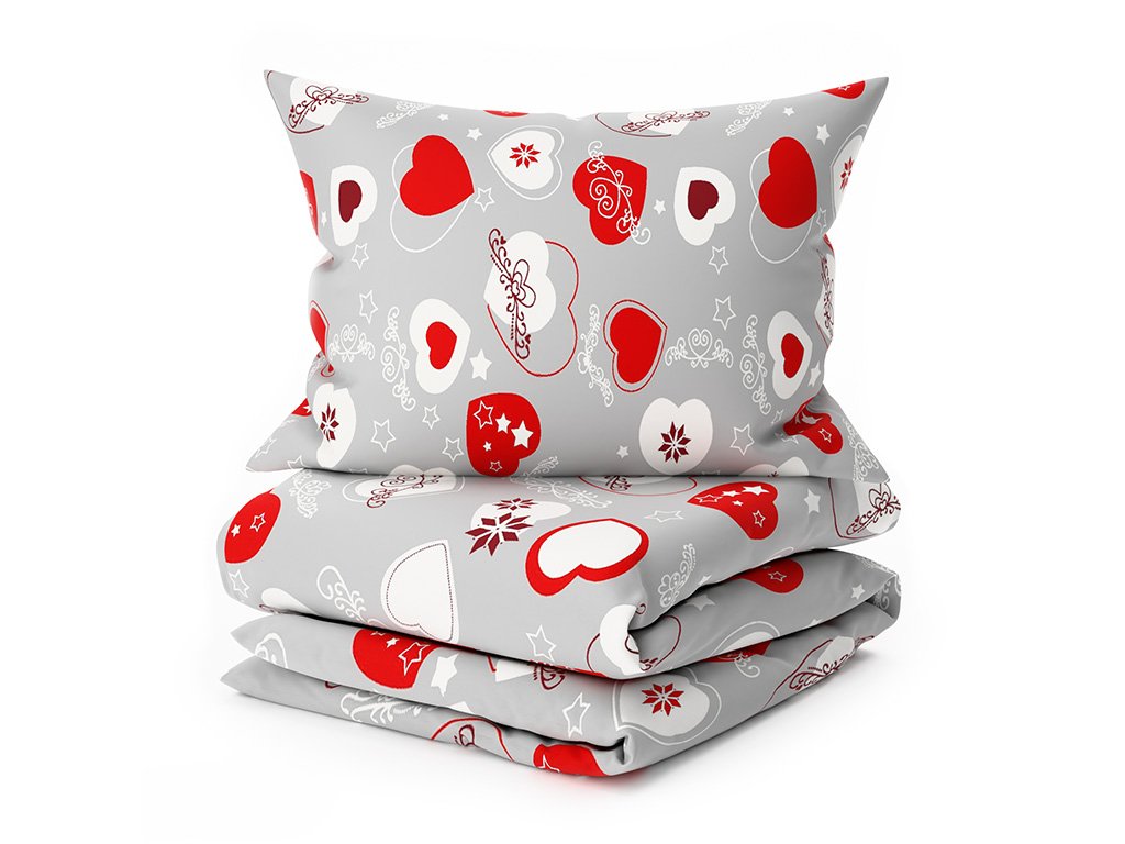 Bavlněné povlečení VÁNOČNÍ SRDCE šedé