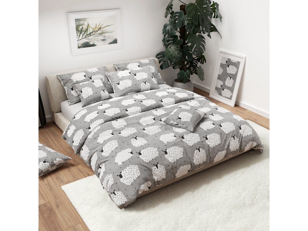 Bavlněné povlečení WHITE SHEEPS šedé