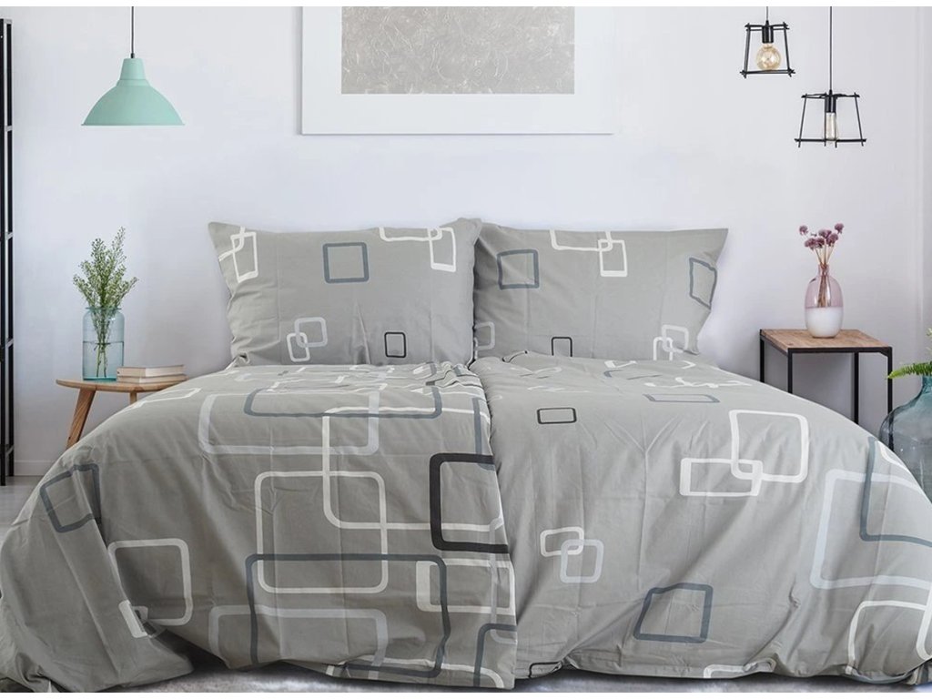 Povlečení z Renforcé bavlny KOSTKY šedé