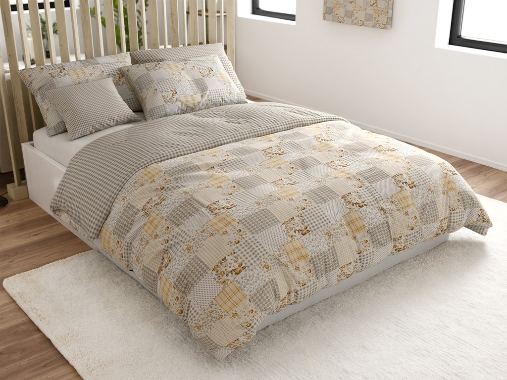 Povlečení z Renforcé bavlny PATCHWORK béžové