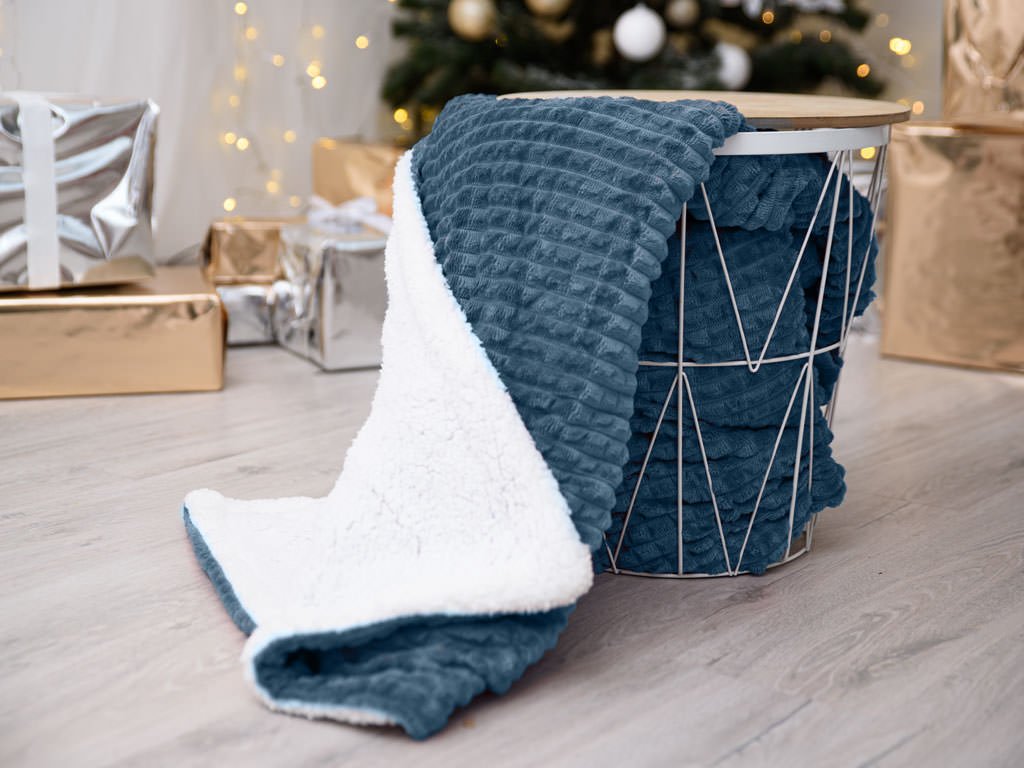 Luxusní modrá beránková deka z mikroplyše s kostkami, 150x200 cm