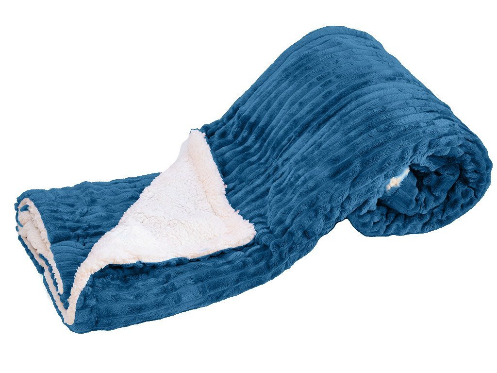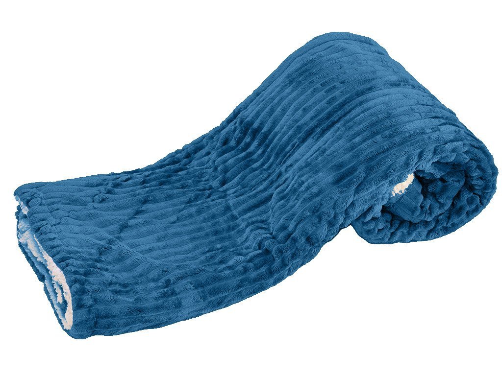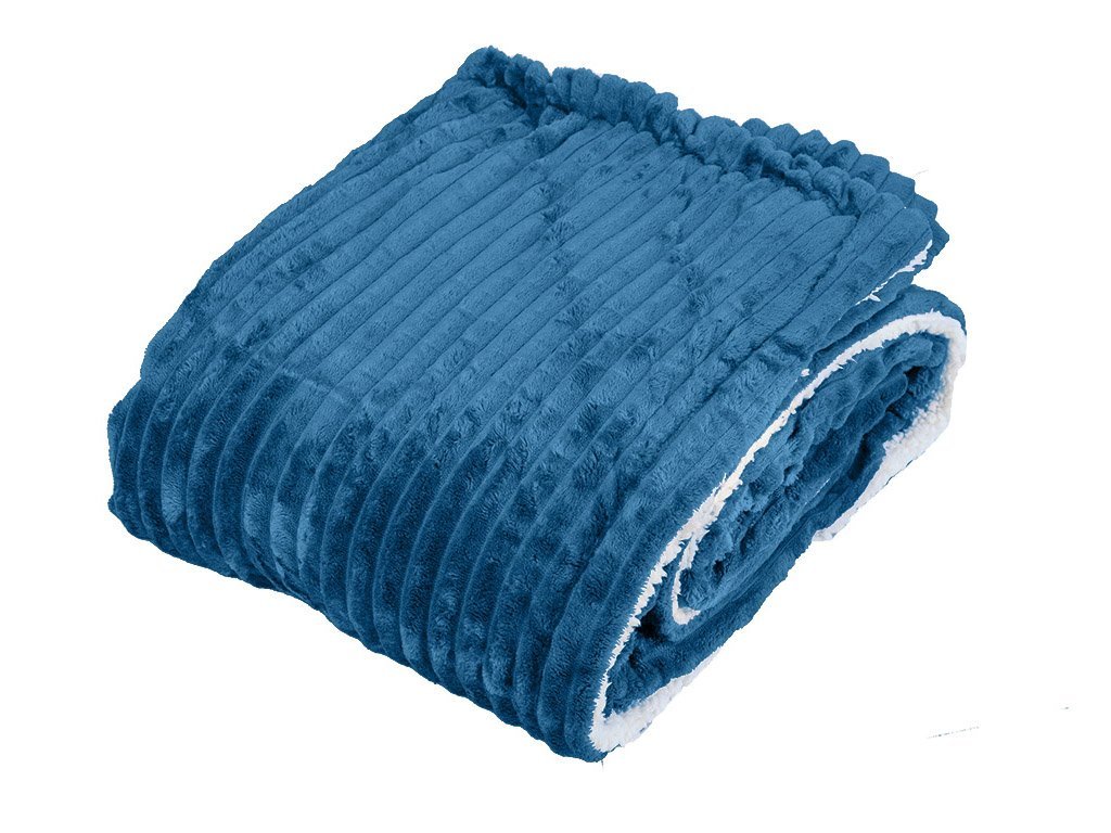 Luxusní modrá beránková deka z mikroplyše s pruhy, 180x200 cm
