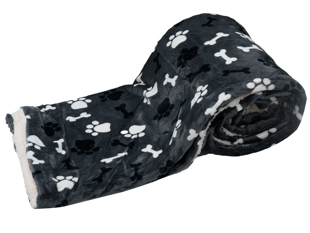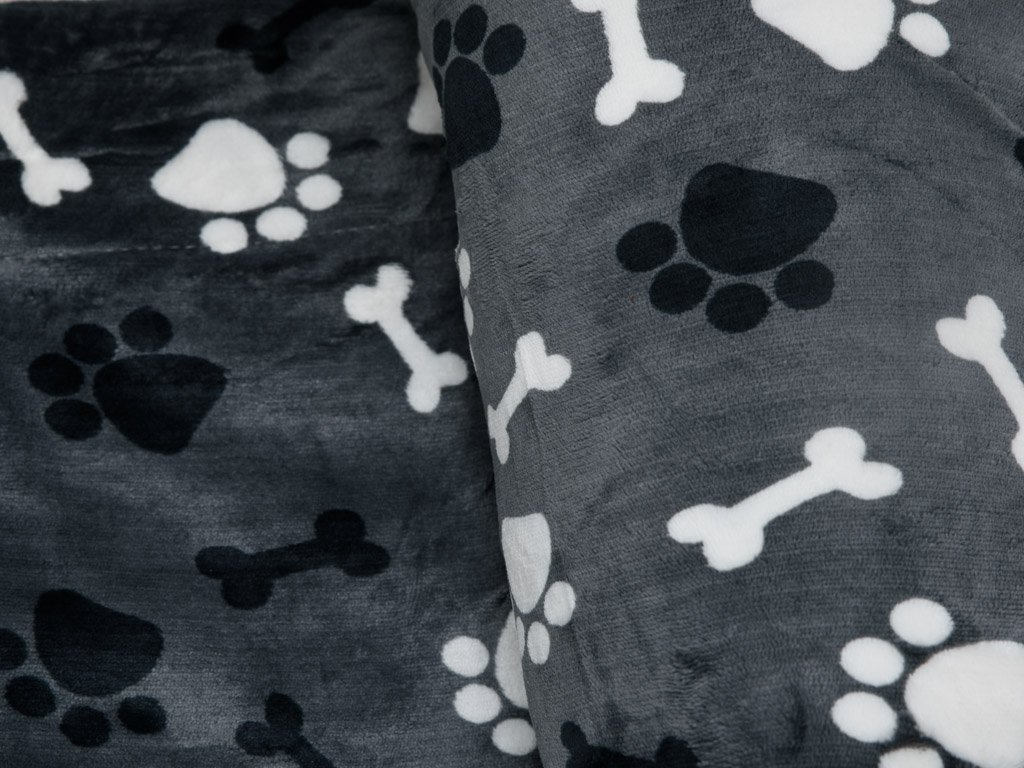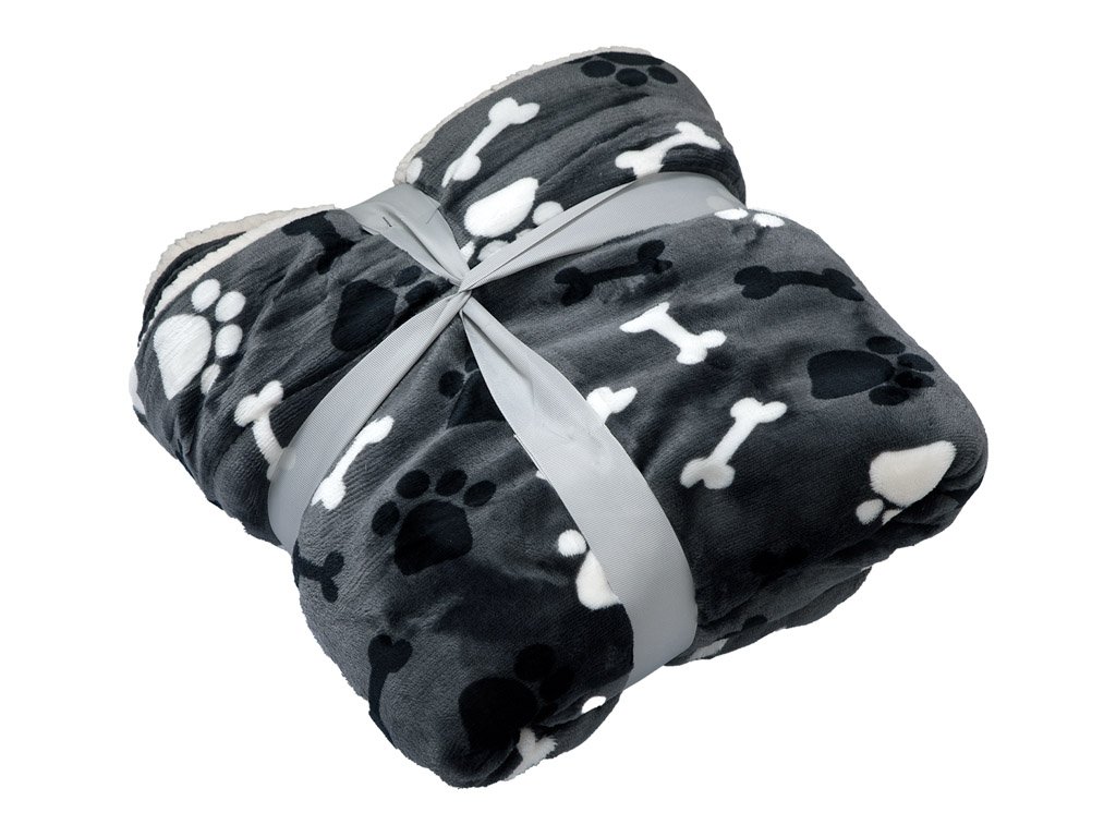 Luxusní šedá beránková deka z mikroplyše TLAPKY A KOSTIČKY, 150x200 cm