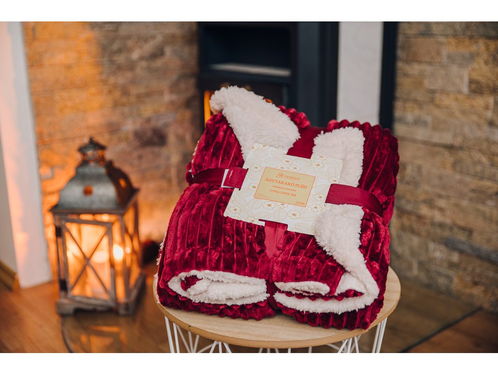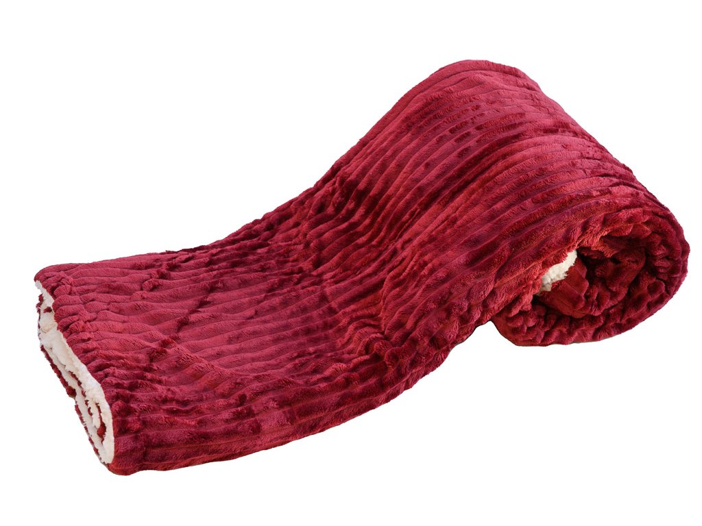 Luxusní vínová beránková deka z mikroplyše s pruhy, 150x200 cm
