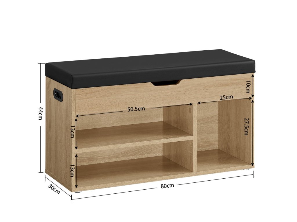 Botník s lavicí a černým sedákem z eko kůže WESO SONOMA 80x30x44 cm