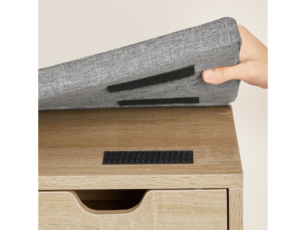 Dekor sonoma skvěle ladí s neutrálními i přírodními tóny. Botník kombinujte s dalšími kusy nábytku v obdobném provedení nebo ho doplňte barevnými polštáři či košíky. Šedý sedák se hodí k minimalistickému i skandinávskému stylu a vytváří příjemně útulnou atmosféru.