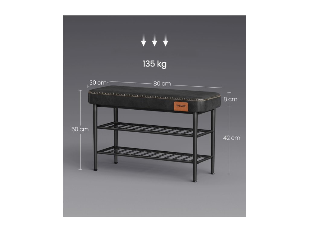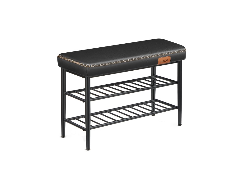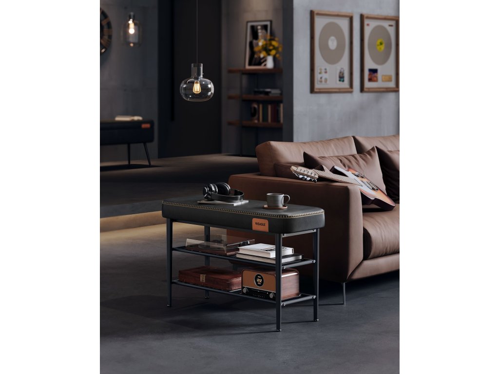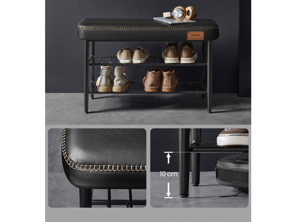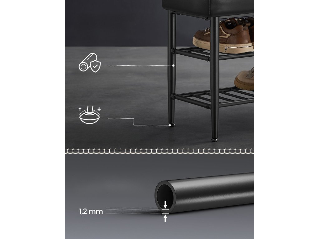 Elegantní industriální lavice s praktickými policemi je ideálním doplňkem do moderního interiéru. Skvěle poslouží nejen jako místo k sezení, ale také pro organizaci obuvi nebo jiných drobností. Díky kombinaci kovu a černé polyuretanové kůže nabízí stylový vzhled, který zapadne jak do předsíně, tak i do obývacího pokoje. Robustní konstrukce zajišťuje dlouhou životnost, zatímco měkký sedák poskytuje maximální pohodlí.