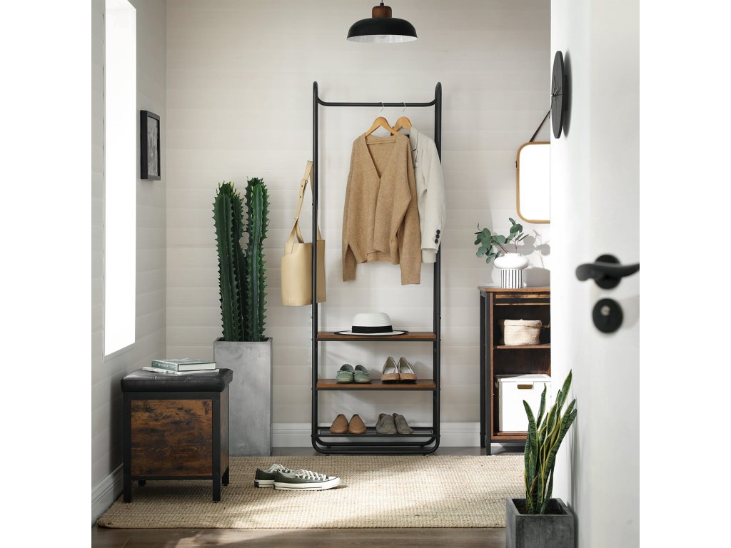 Tento úzký věšák s lavicí je ideálním řešením pro menší předsíně nebo chodby. Nabízí praktickou kombinaci háčků, odkládacích polic a sezení, aniž by zabíral mnoho místa. Posuvné háčky umožňují přizpůsobit rozložení podle potřeby a lavice poskytne pohodlí při obouvání. Díky industriálnímu stylu s kovovou konstrukcí a dřevěnými detaily se stane vkusným doplňkem vašeho interiéru, který zaujme i svou praktičností.