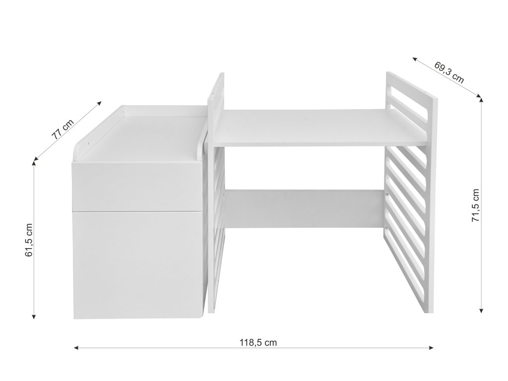 - možnost vytvořit psací stůl s nastavitelnou deskou a skříňku se zásuvkou a policemi