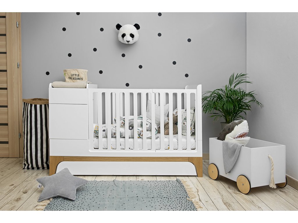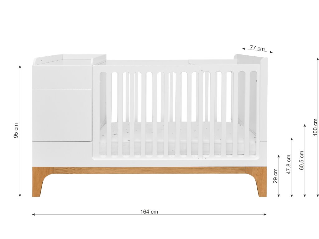 - tři úrovně rámu matrace přizpůsobené růstu dítěte (60,5/47,8/29 cm od podlahy)