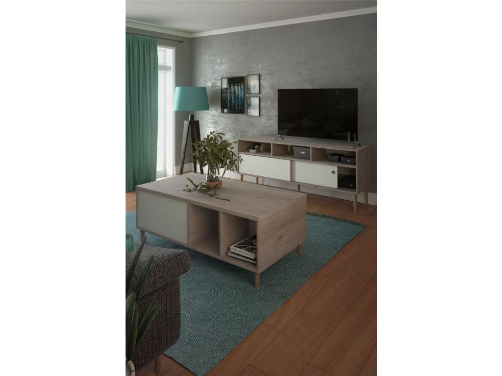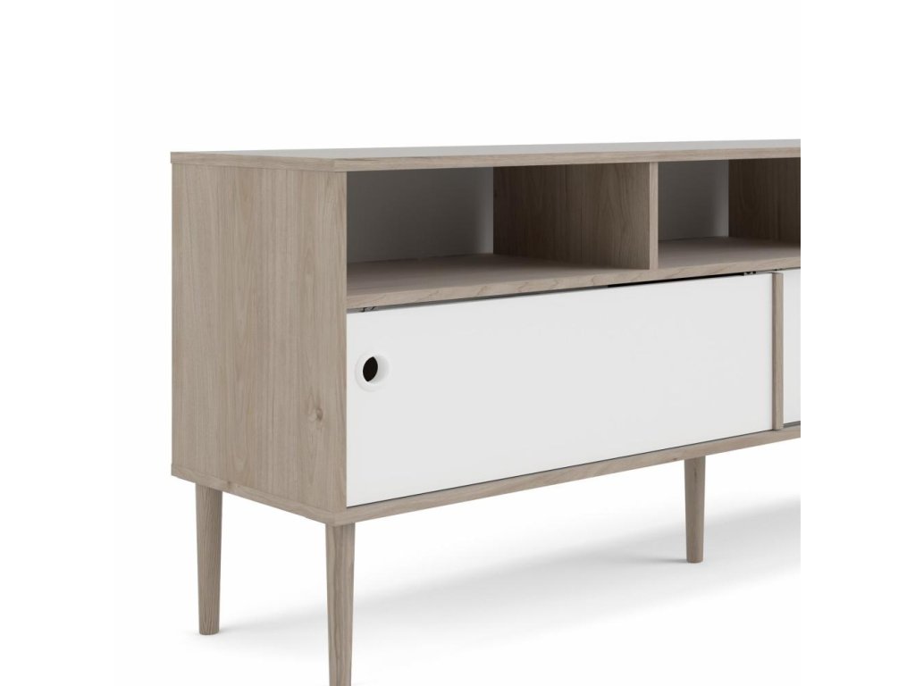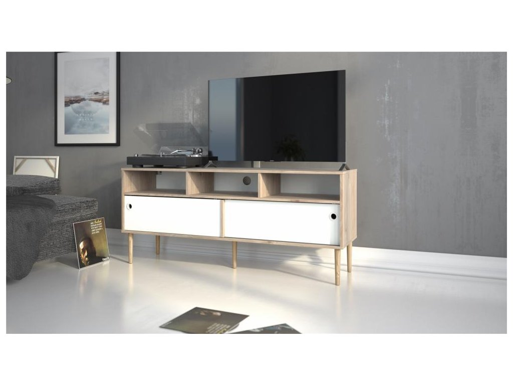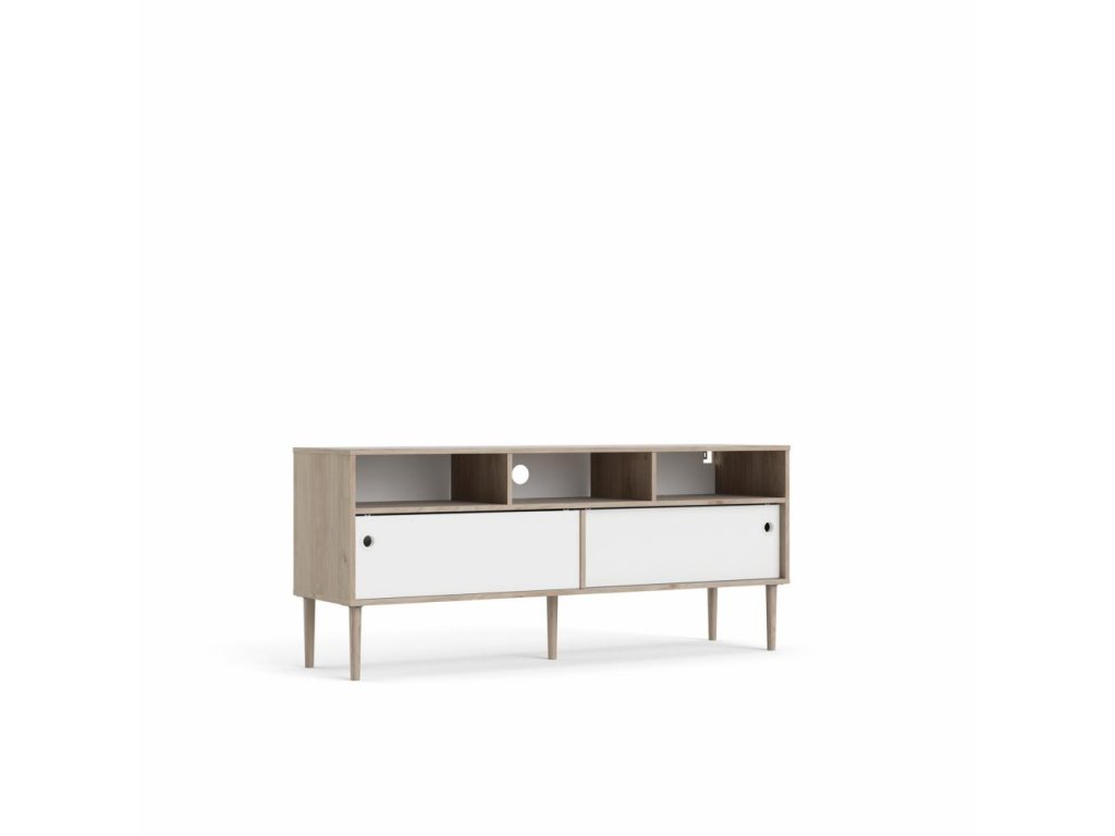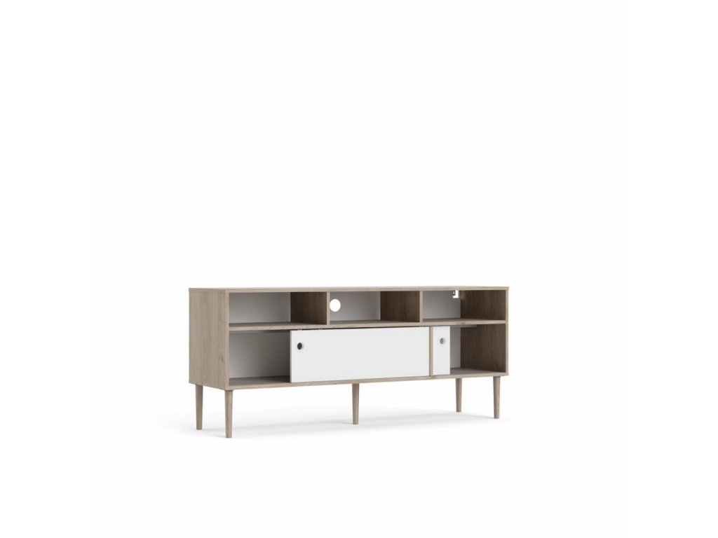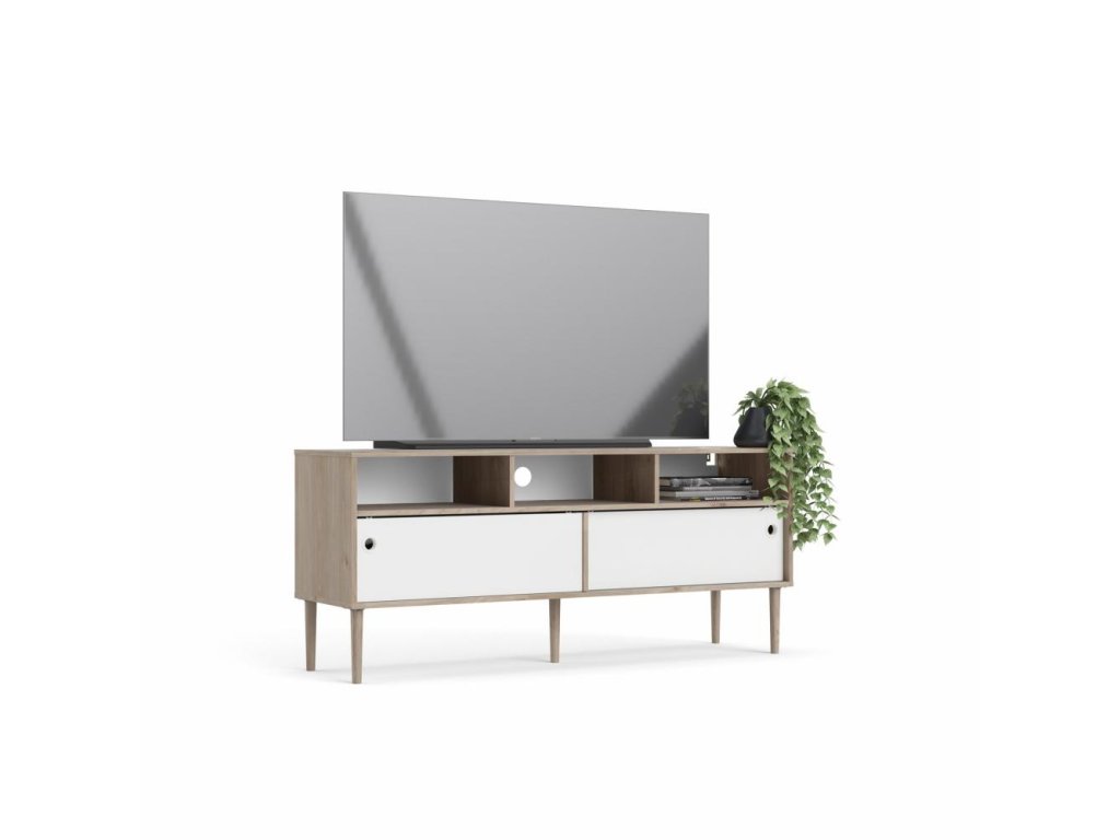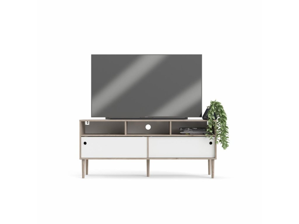 Bílý TV stolek ELISEO v dekoru dub Jackson Hickory