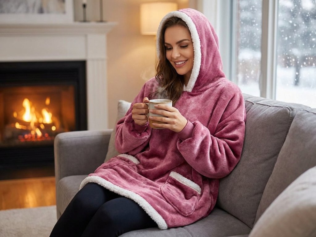 Beránková mikinová deka s rukávy a kapucí LAVENDR, vínová