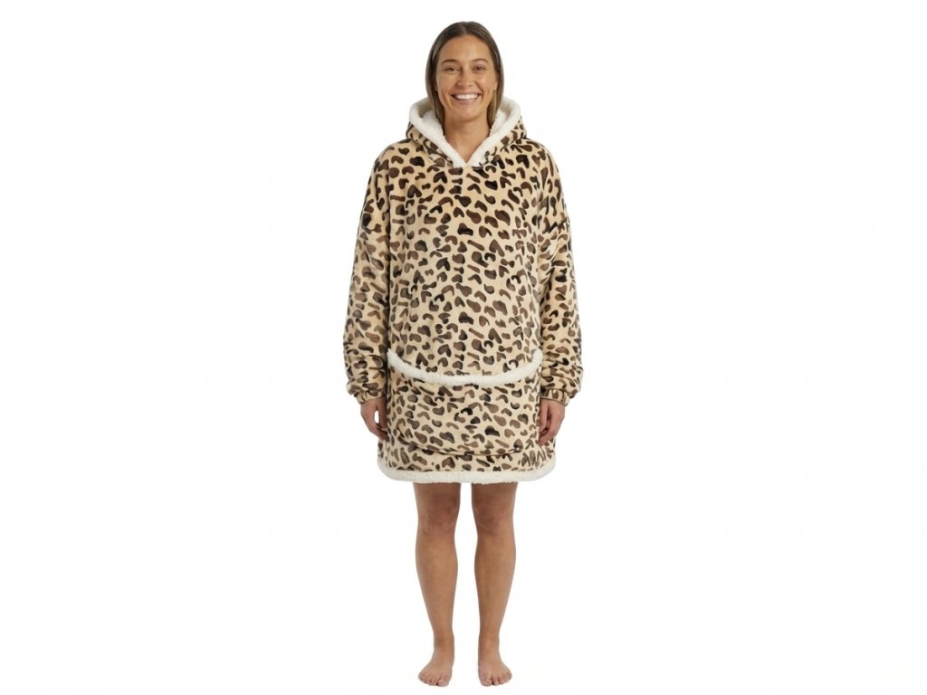 Beránková mikinová deka s rukávy a kapucí LEOPARD, krémová