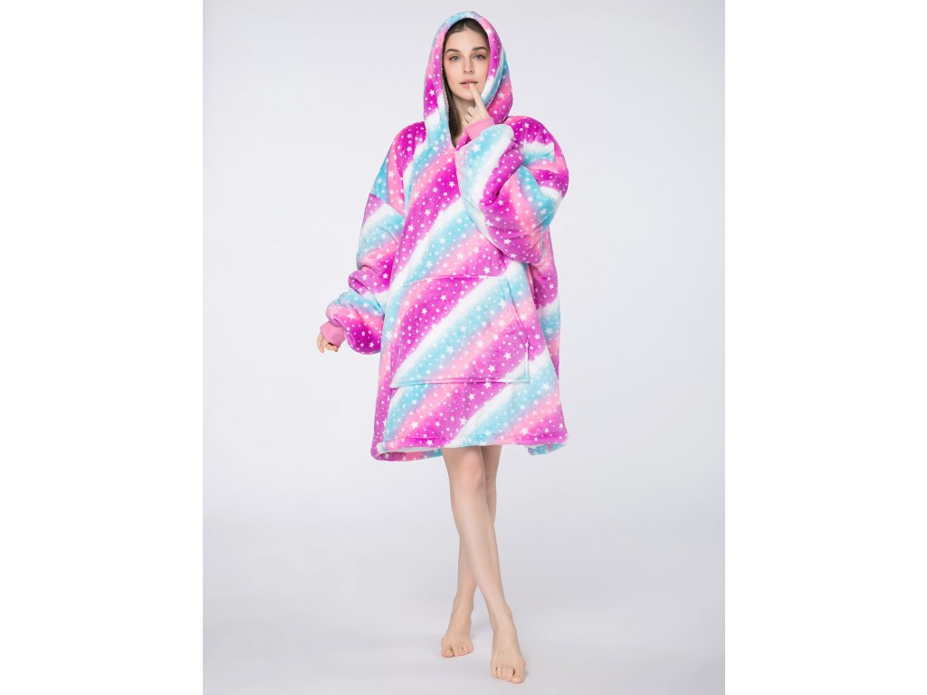 Beránková mikinová deka s rukávy a kapucí AURORA barevná