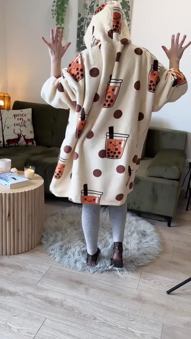 Beránková mikinová deka s rukávy a kapucí BEVERAGE krémová