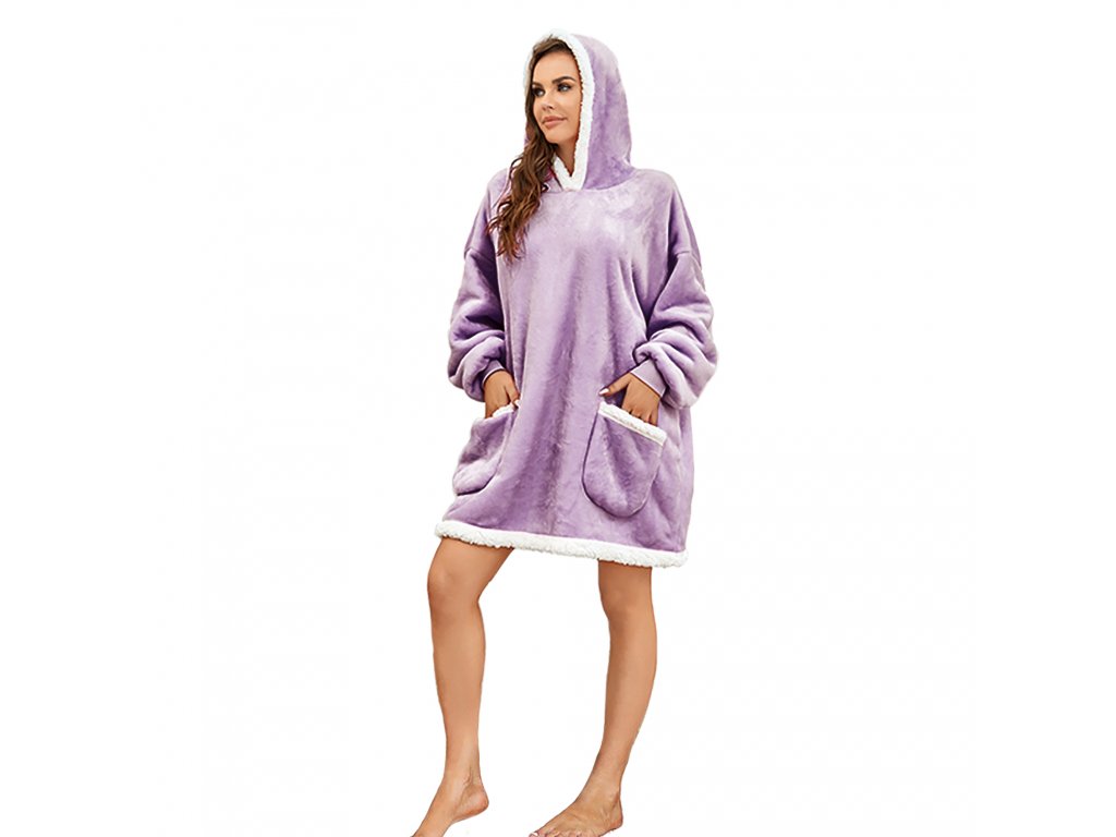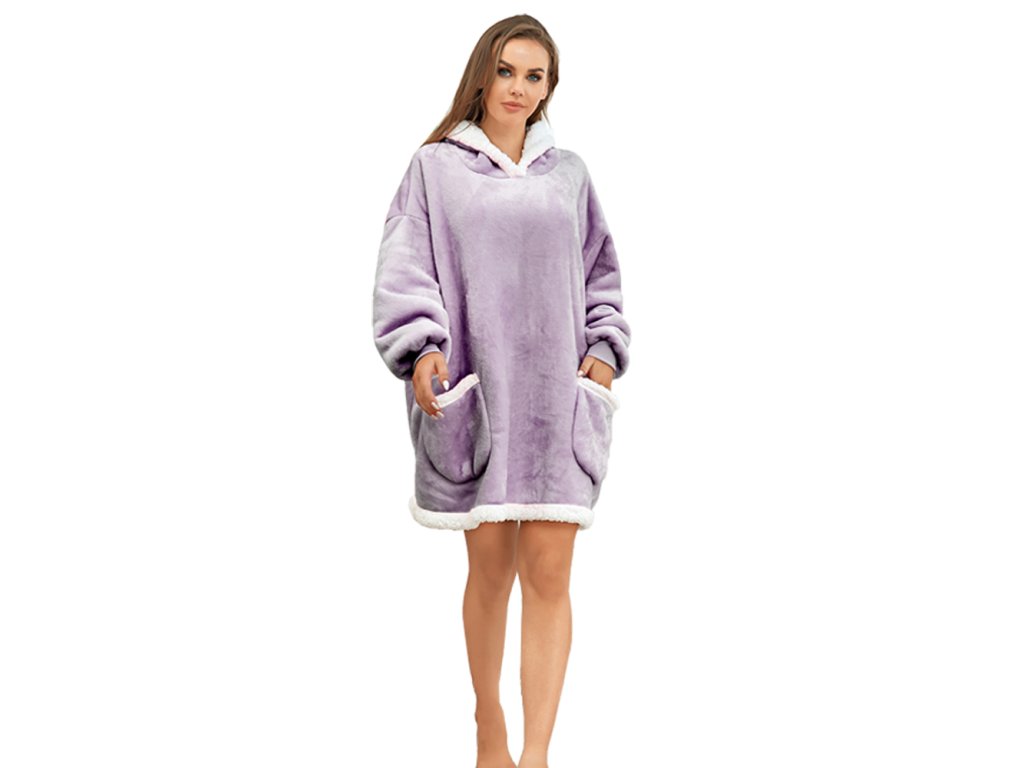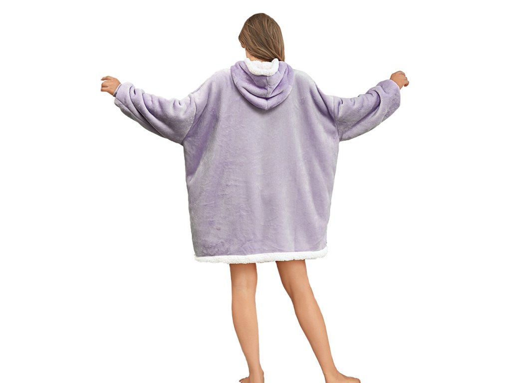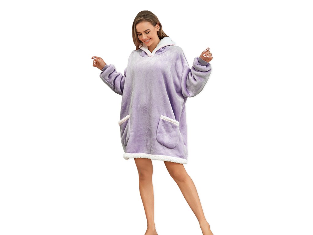 Beránková mikinová deka s rukávy a kapucí LAVENDR světle fialová
