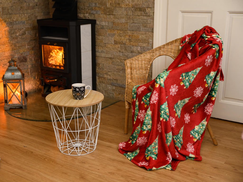 Červená vánoční mikroplyšová deka STROMEČEK A VLOČKA, 150x200 cm