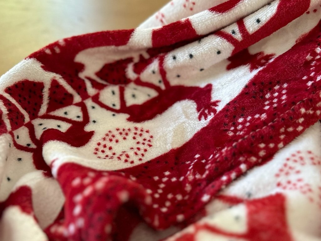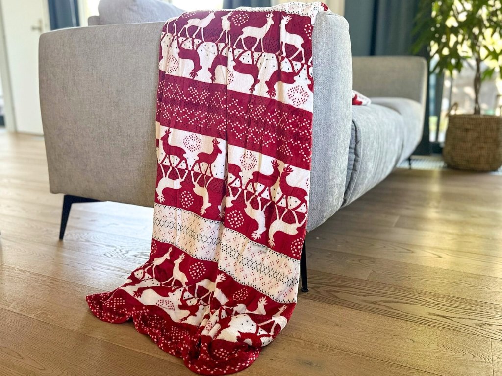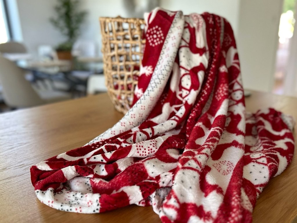 Červeno-bílá vánoční mikroplyšová deka SOBI