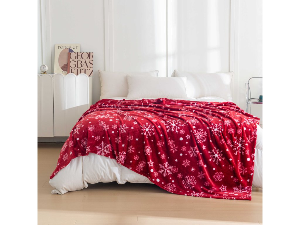 Dárková sada do obývacího pokoje SNOWFALL, deka a polštářky, červená