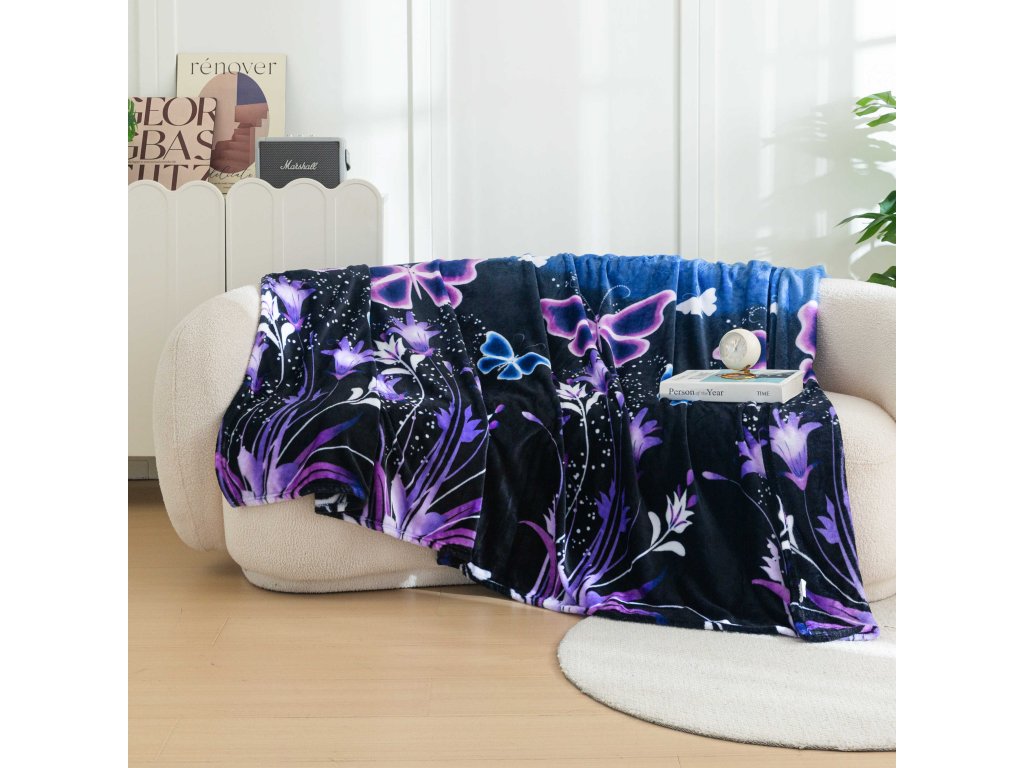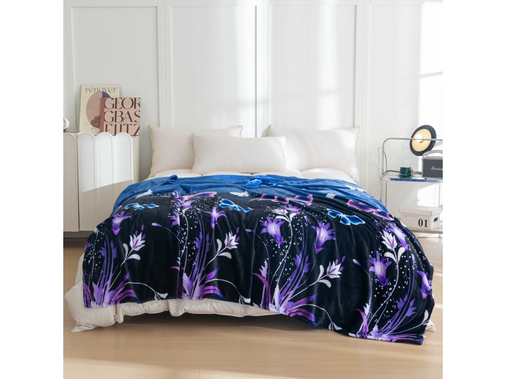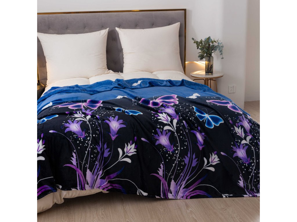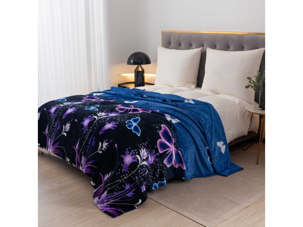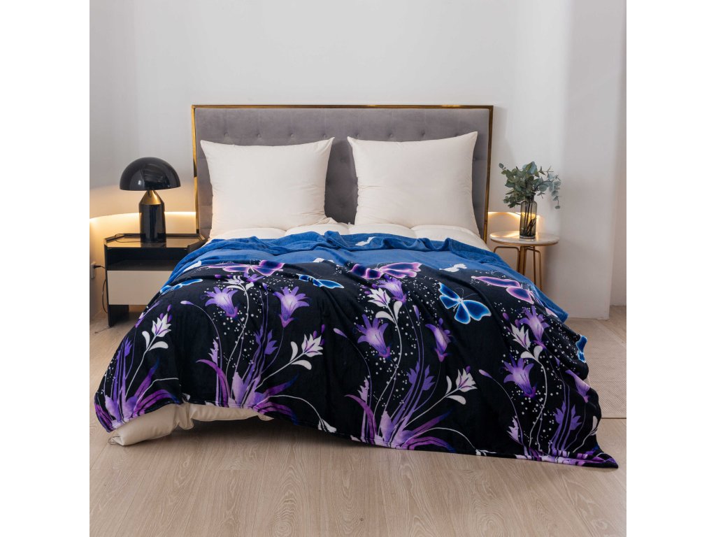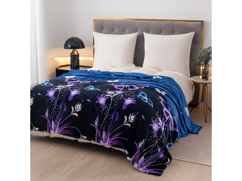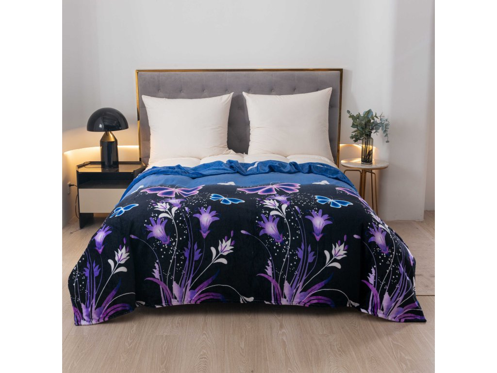 Mikroplyšová deka VIOLET BUTTERFLY tmavě modrá