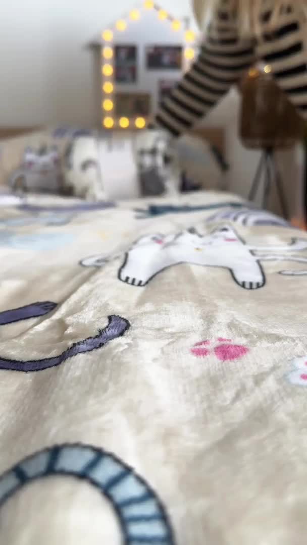 Mikroplyšová deka VZOROVANÉ KOČKY 150x200 cm krémová