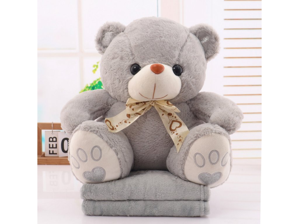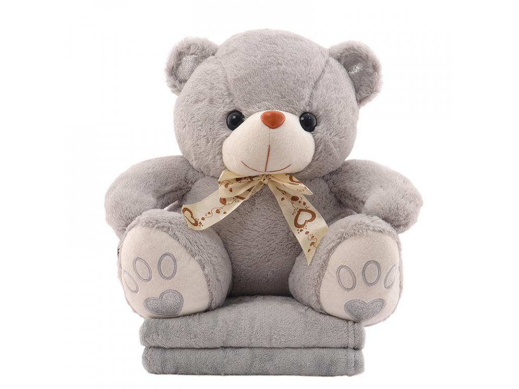 Plyšový MEDVÍDEK s dětskou dekou uvnitř šedý