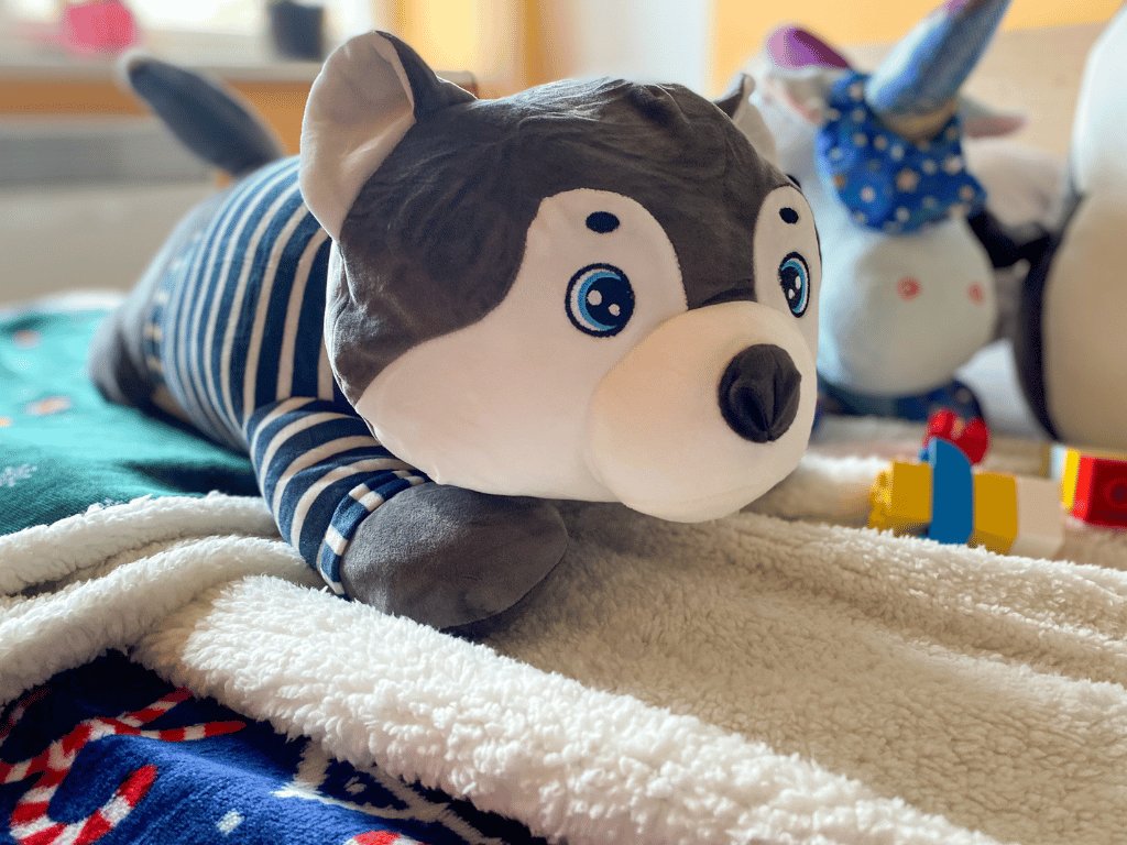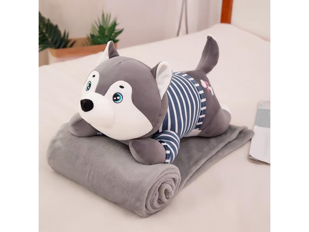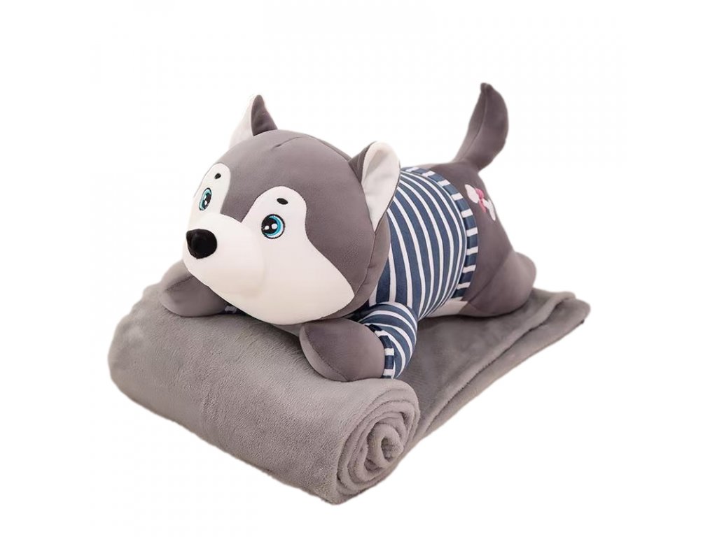 Plyšový PEJSEK s dětskou dekou uvnitř šedý