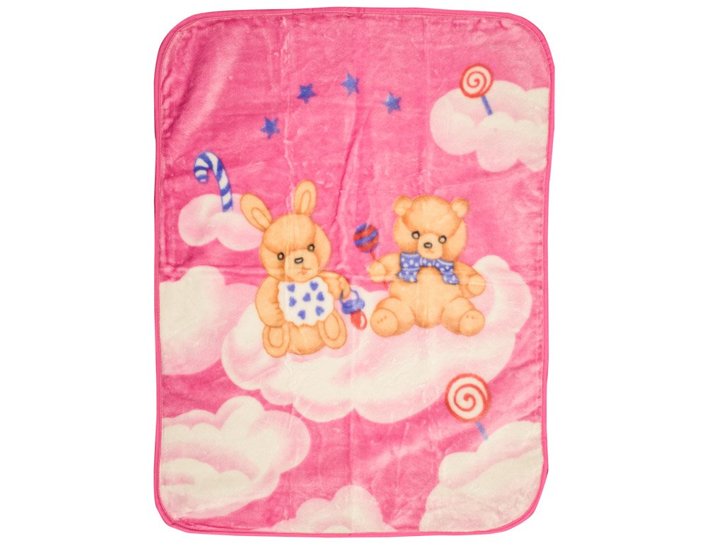 Růžová dětská deka ZAJÍČEK A MEDVÍDEK, 80x110 cm