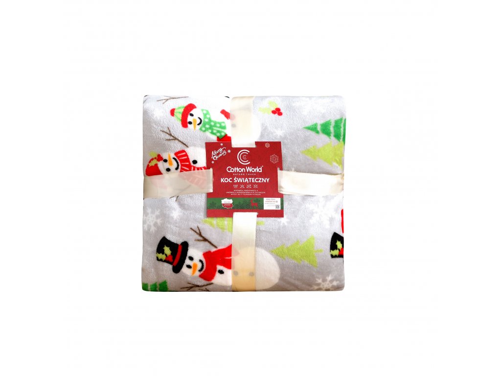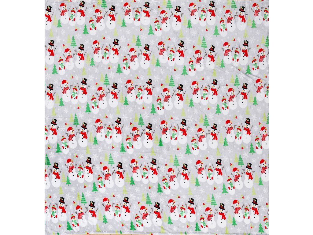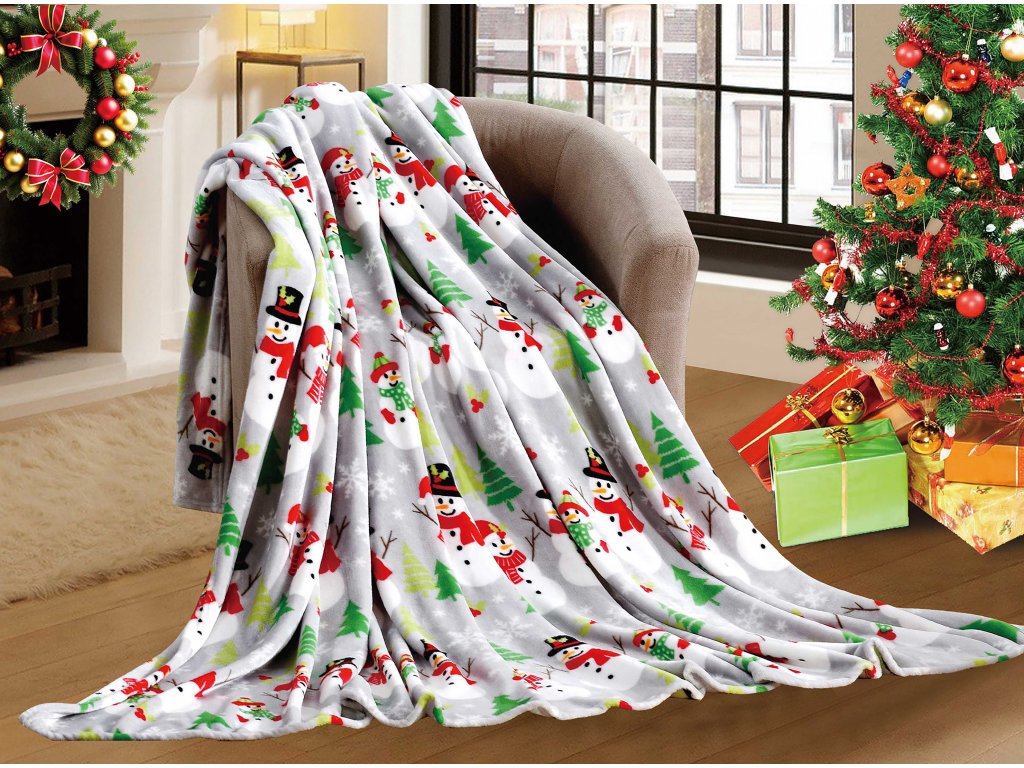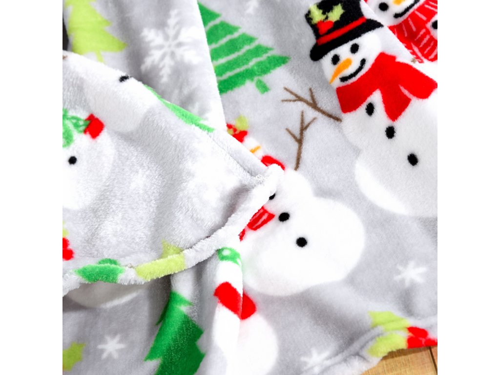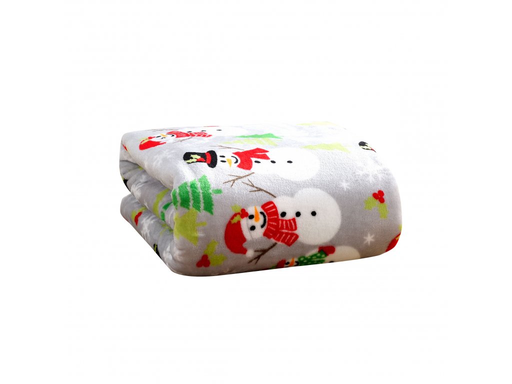 Šedá vánoční mikroplyšová deka SNOWMAN