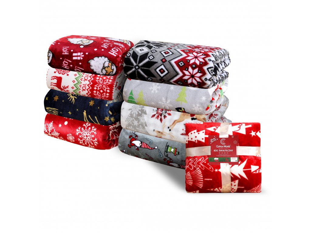 2x Šedá vánoční mikroplyšová deka MERRY CHRISTMAS DEER 160x200 cm