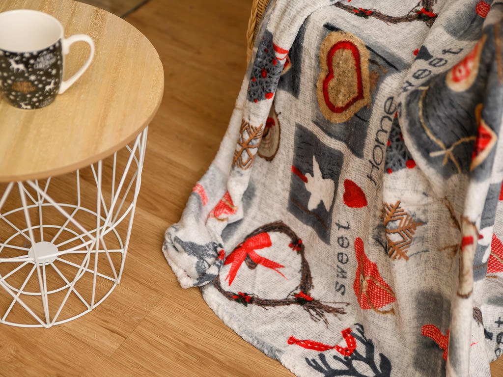 Šedá vánoční mikroplyšová deka SWEET HOME, 150x200 cm