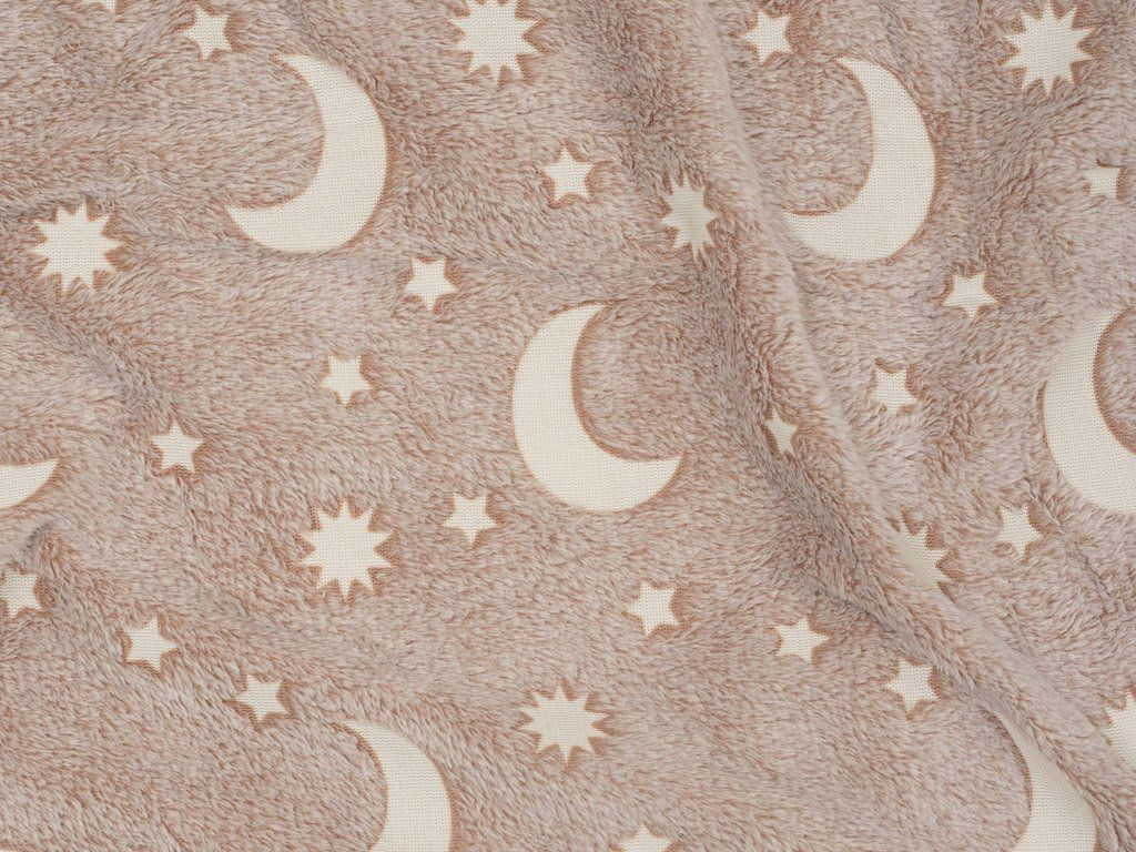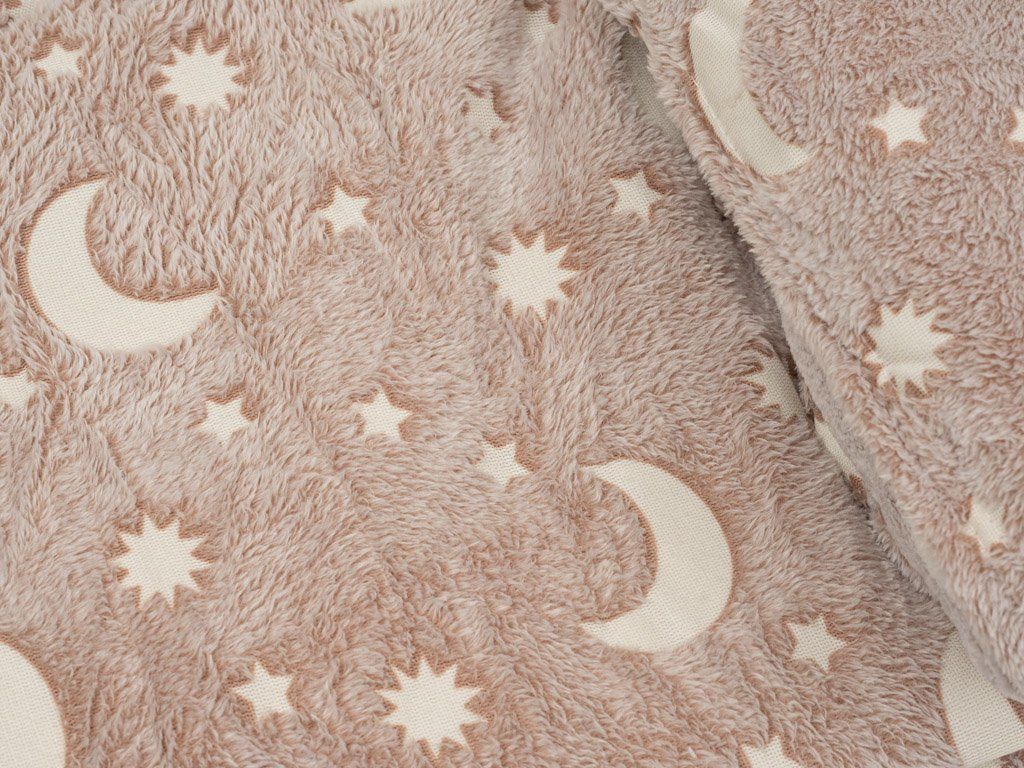 Svítící deka mikroflanel HVĚZDIČKY A MĚSÍC 150x200 cm béžová