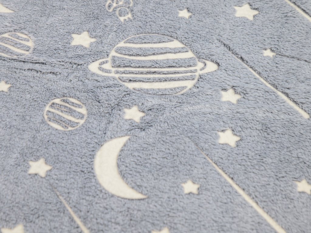 Svítící deka mikroflanel PLANETY A RAKETY 150x200 cm šedá