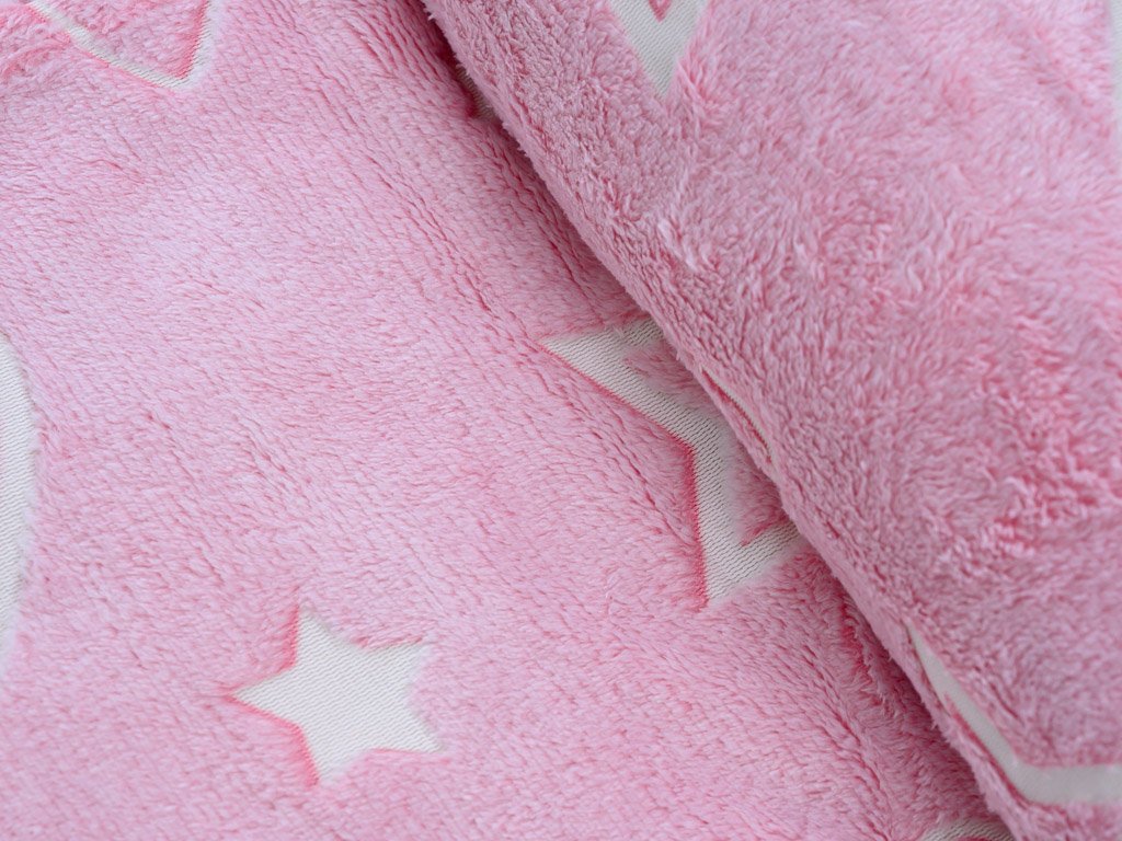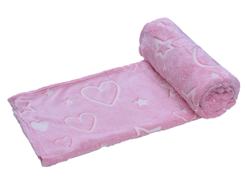 Svítící deka mikroflanel SRDCE A HVĚZDY 150x200 cm růžová