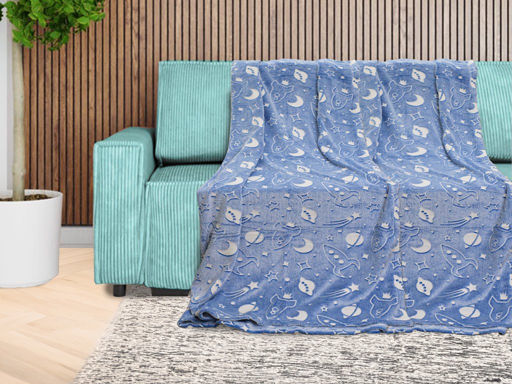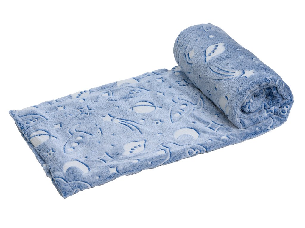 Svítící deka mikroflanel UNIVERSE 150x200 cm modrošedá