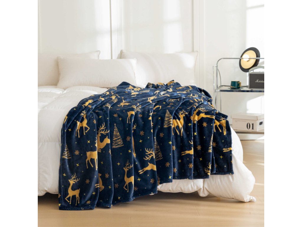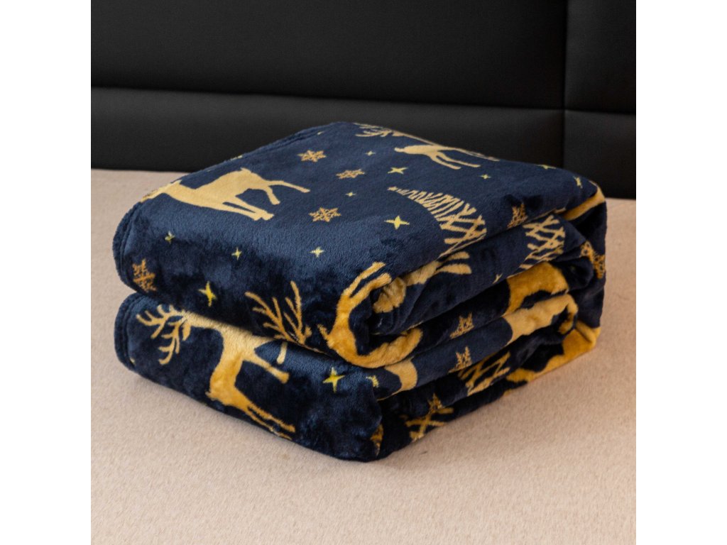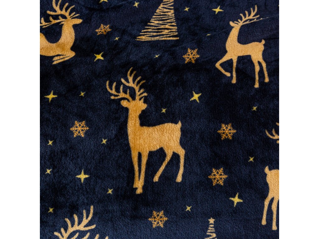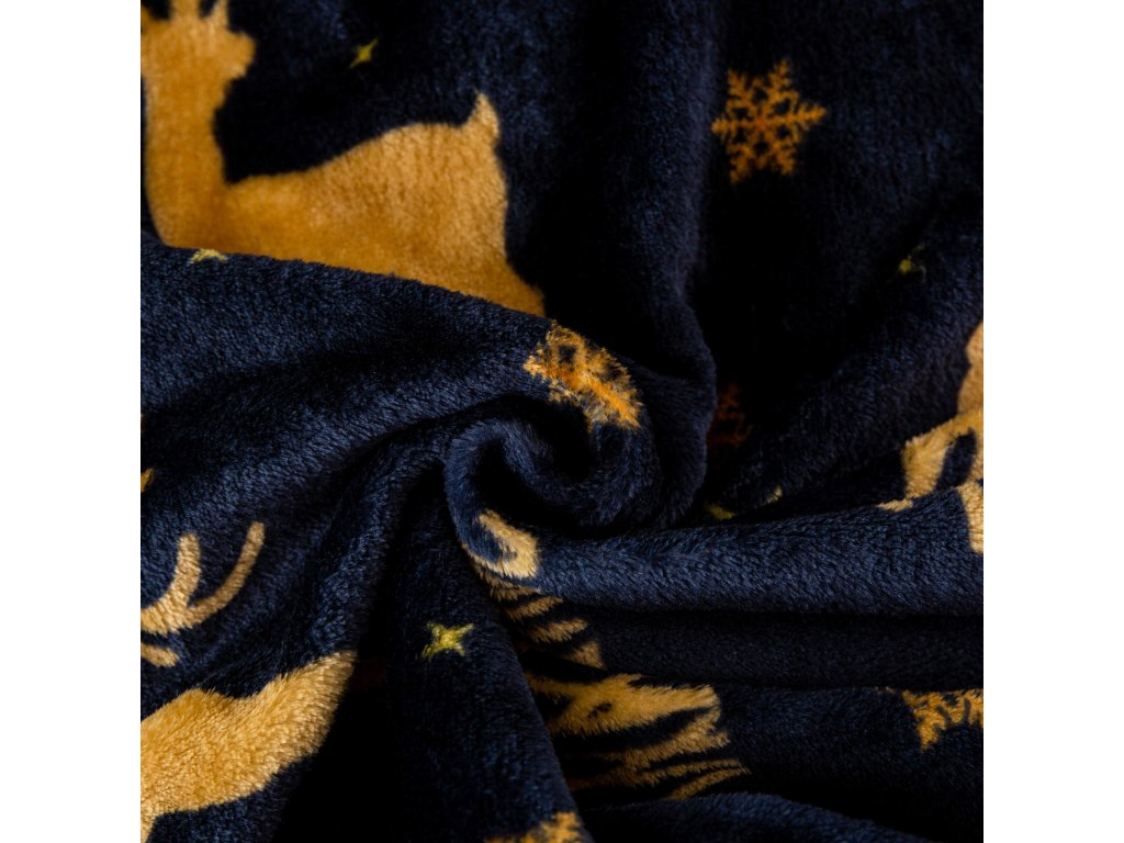 Tmavě modrá vánoční mikroplyšová deka GOLDEN DEER