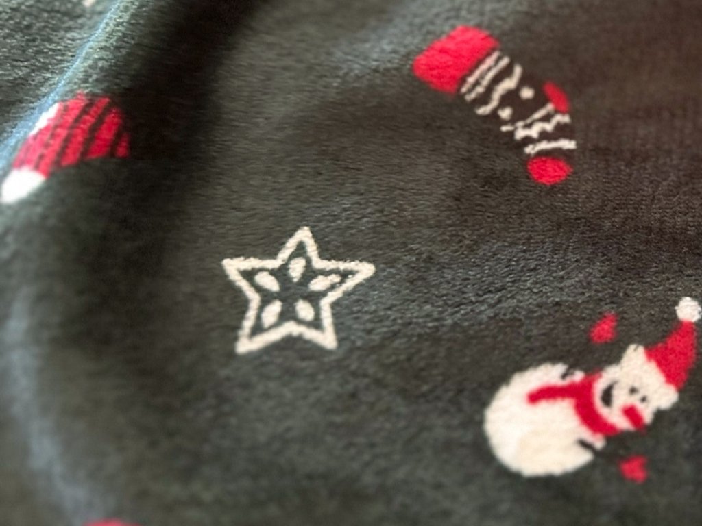 Tmavě zelená vánoční mikroplyšová deka VÁNOČNÍ ČEPICE