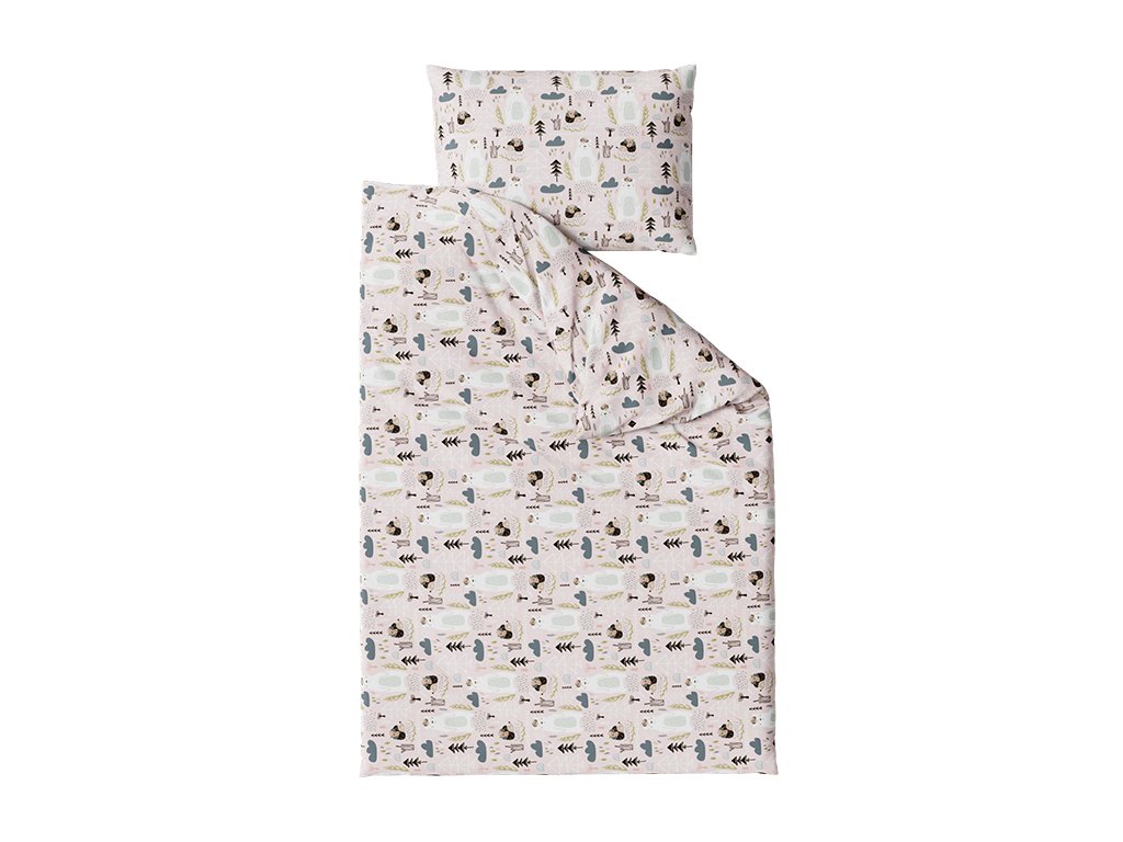 Bavlněné povlečení do postýlky JEŽEK A MEDVĚD růžové
