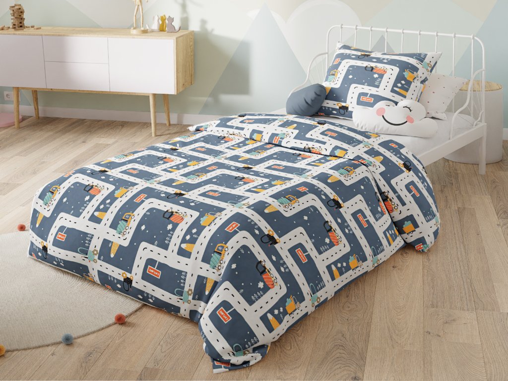 Bavlněné povlečení do postýlky KŘIŽOVATKY modré