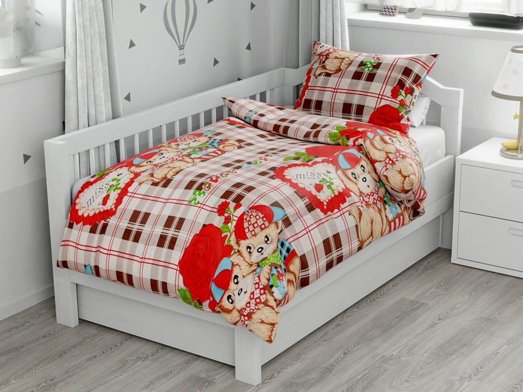 Bavlněné povlečení do postýlky PEJSEK S MEDVÍDKEM hnědé