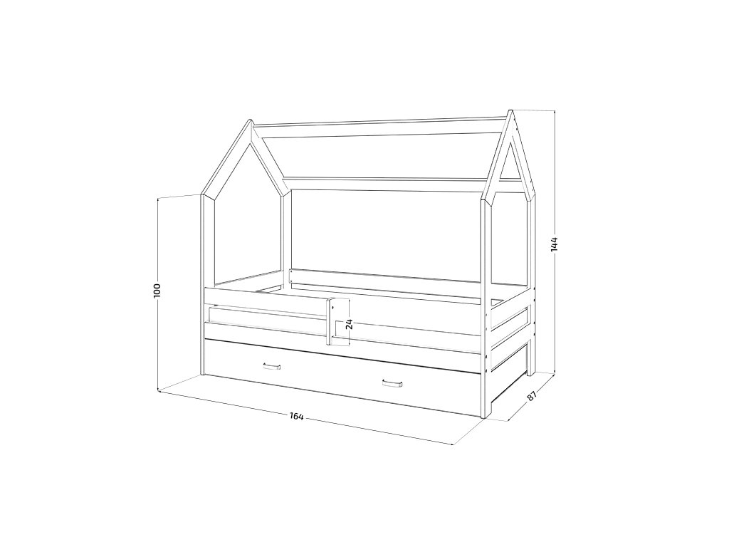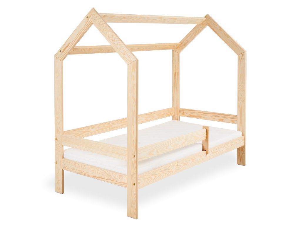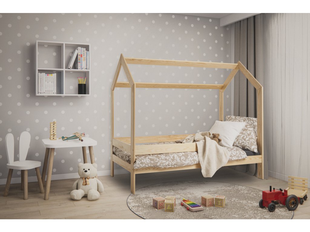 Dětská postel ve tvaru domečku nabízí nejen pohodlné místo ke spánku, ale také útulné zákoutí pro hraní, snění a odpočinek. Přirozená kresba a teplý dekor borovicového dřeva vnáší do interiéru kousek přírody a klidu. Postel lze snadno ozdobit lehounkými závěsy, jemnými světýlky nebo hravými dekoracemi, díky čemuž vytvoříte prostředí plné fantazie. Pevná konstrukce a kvalitní zpracování garantují bezpečnost a dlouhodobou spolehlivost, což dělá z této postele ideální volbu pro každého malého objevitele.